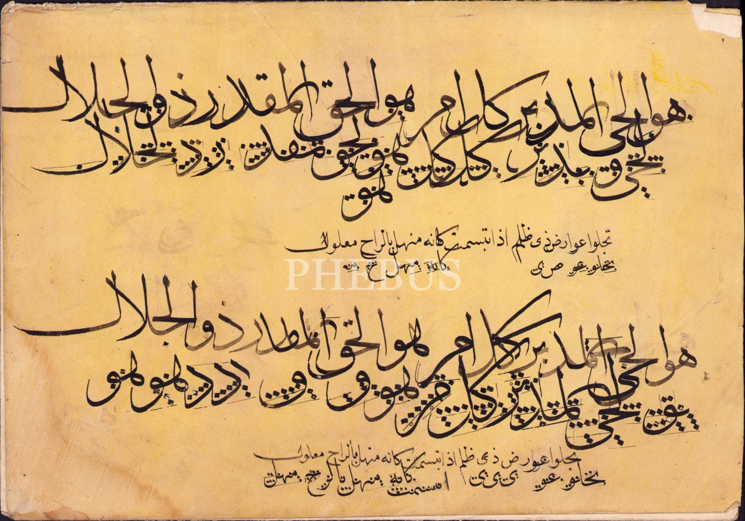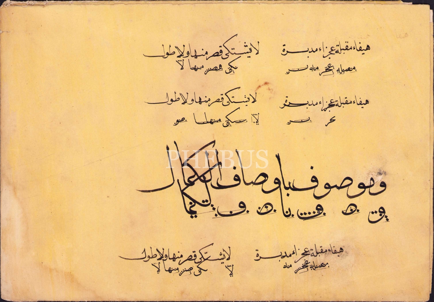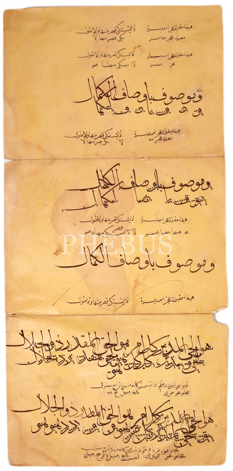 Sülüs Nesih meşk, hoca düzeltmeleriyle, haliyle, birleşik üç parça, 25x52 cm