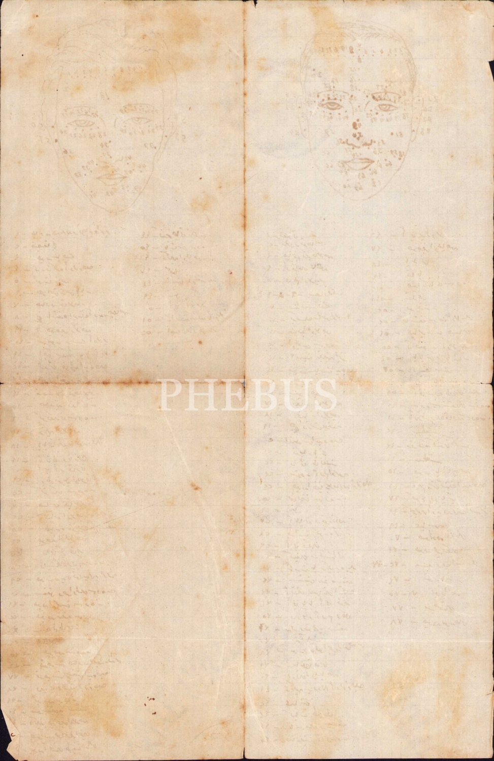 Yüz özelliklerine göre, "şair", "yalancı", "budala", "tayyare kullanmağa müsaid" şeklinde kişilik okumaları yazılıdır.