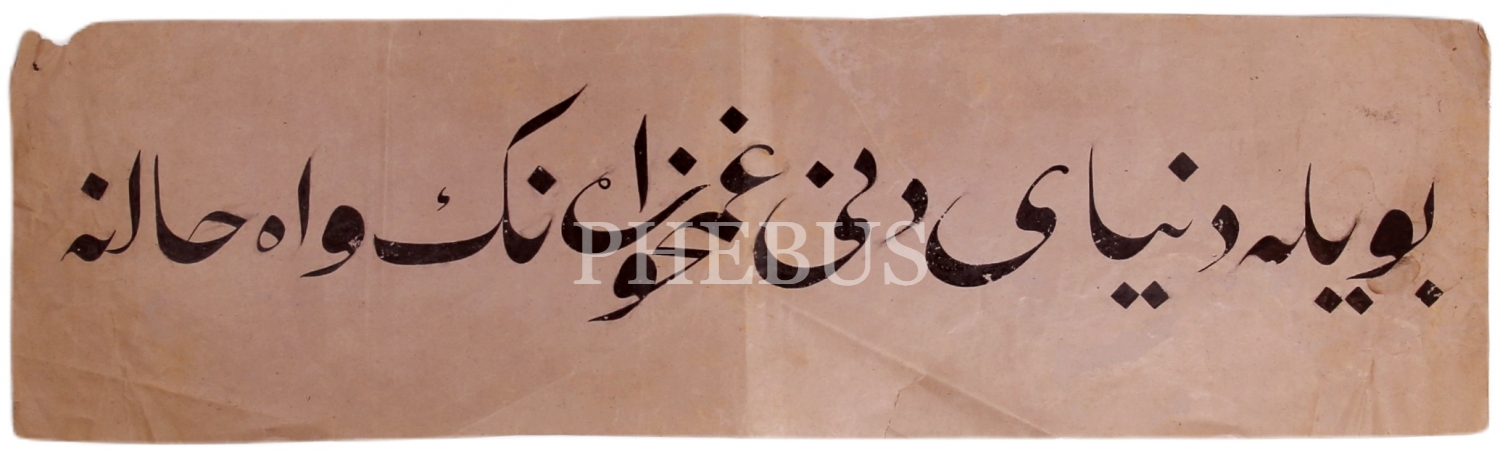 Talik yazı, "Böyle dünya-yı deni gam-hanede anın [onun] vah haline", 49x14 cm