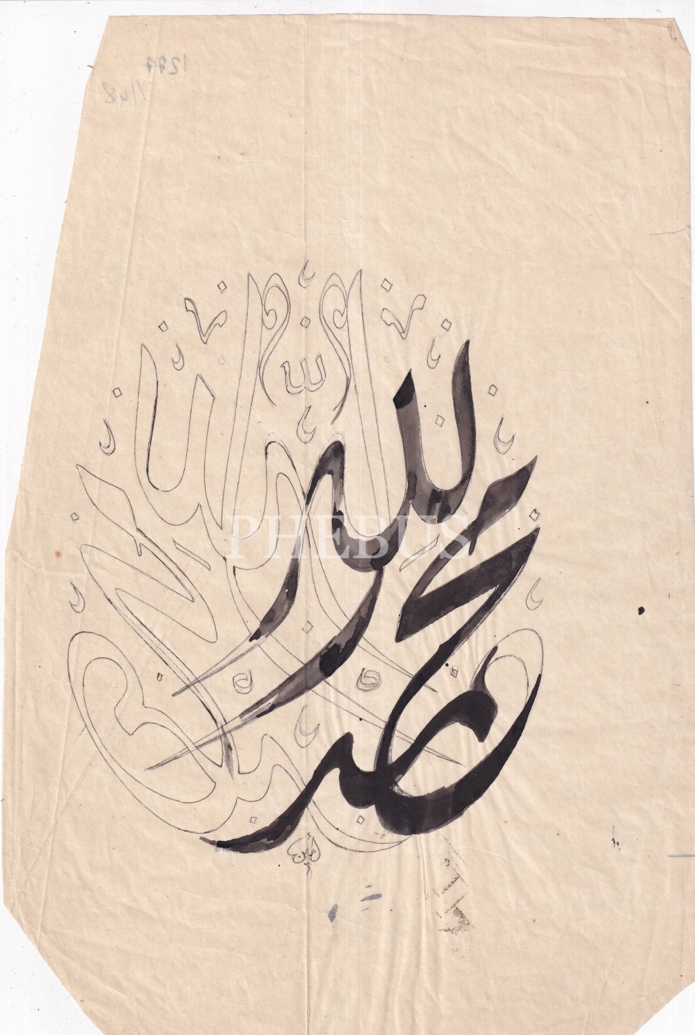 Müsenna Celi Divani yazı çalışması, "Allah, Muhammed", Emin [Barın] ketebeli, 19x30 cm