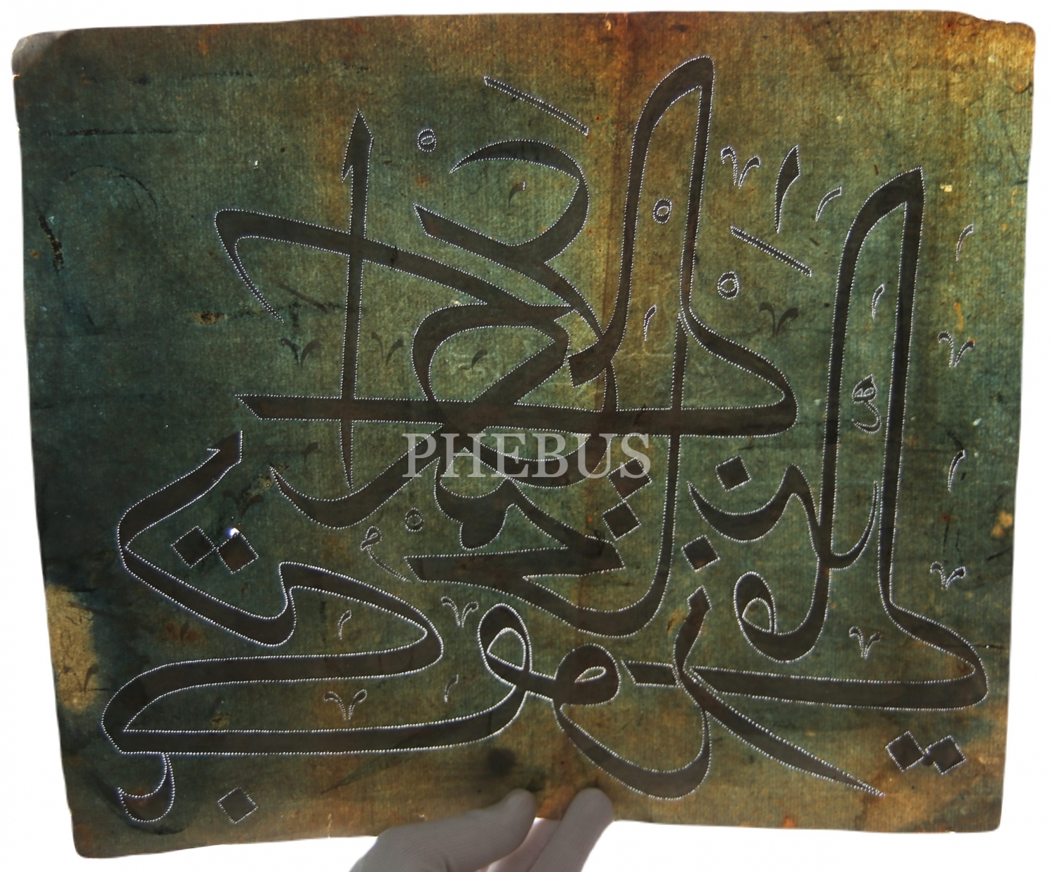 Erken dönem Hoca işi Celi Sülüs istif yazı, iğneli kalıp, 35x29 cm