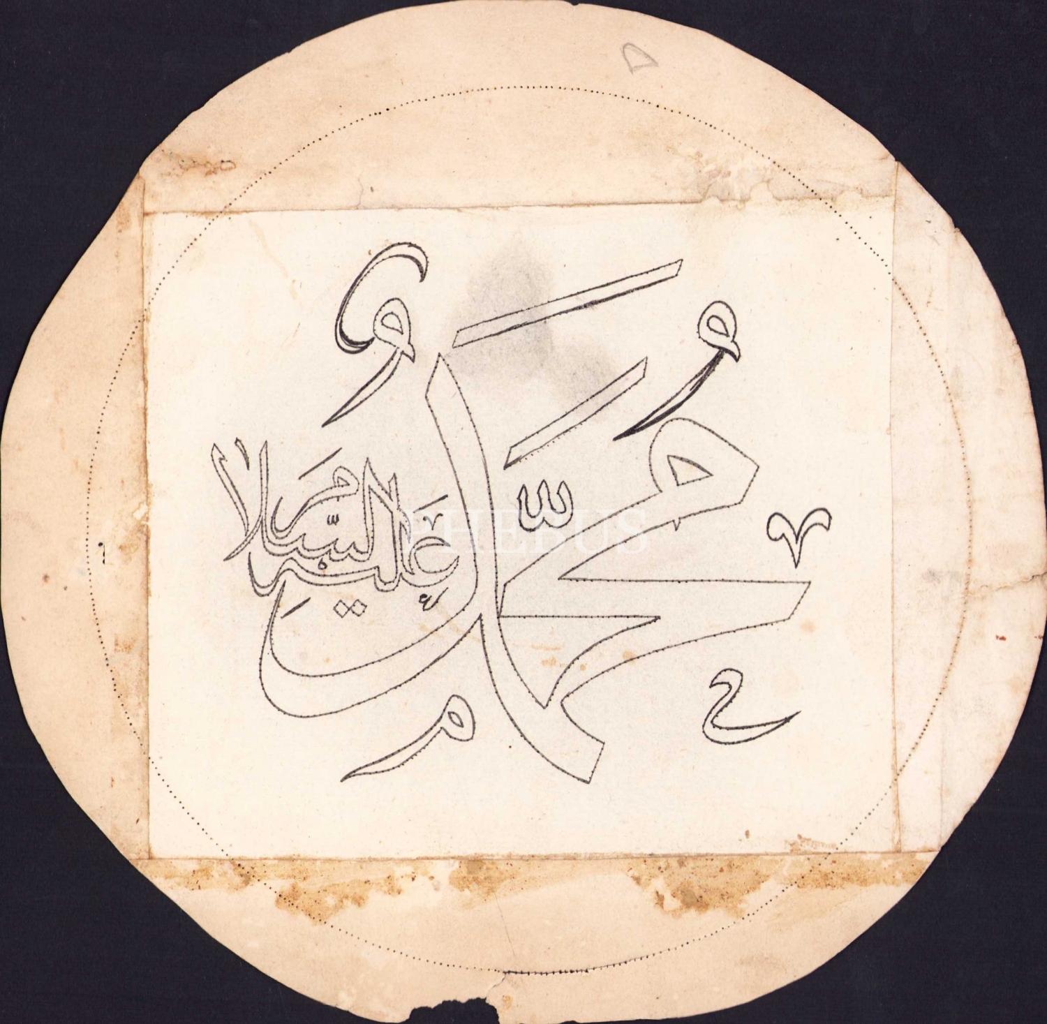 Sülüs yazı kalıbı, iğneli, "Muhammed Aleyhisselam", 21 cm
