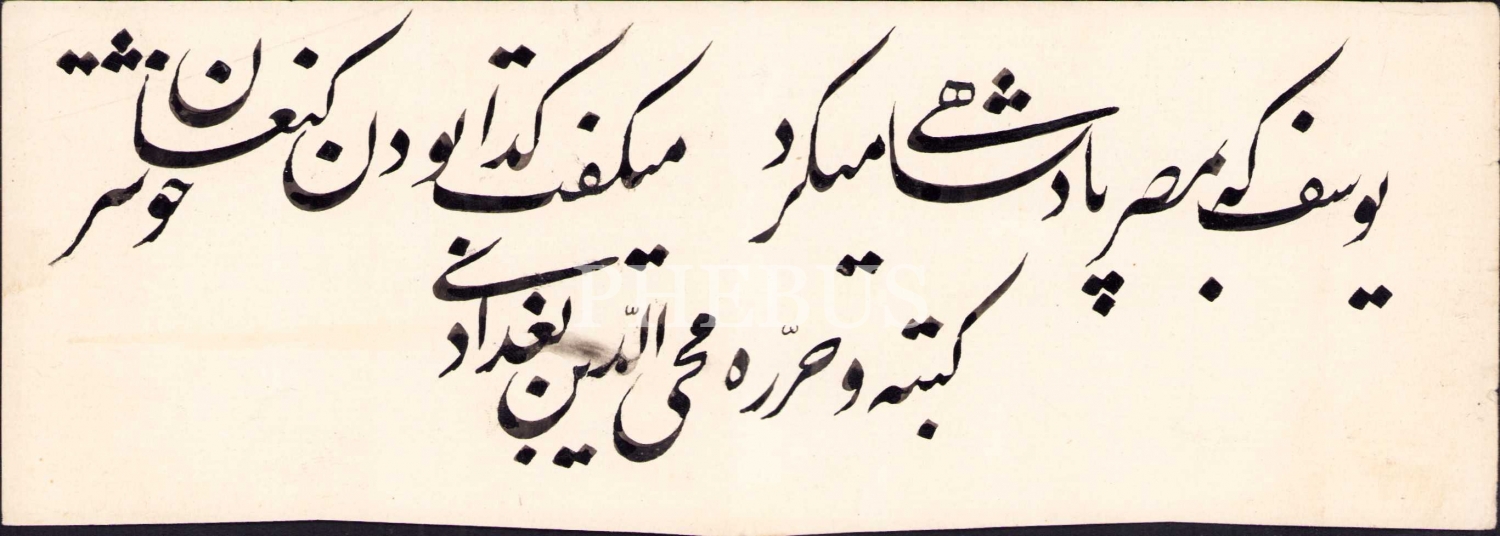 Talik Yazı, Hz. Yusuf ile alakalı, Muhyiddin Bağdadi ketebeli, 23x8 cm
