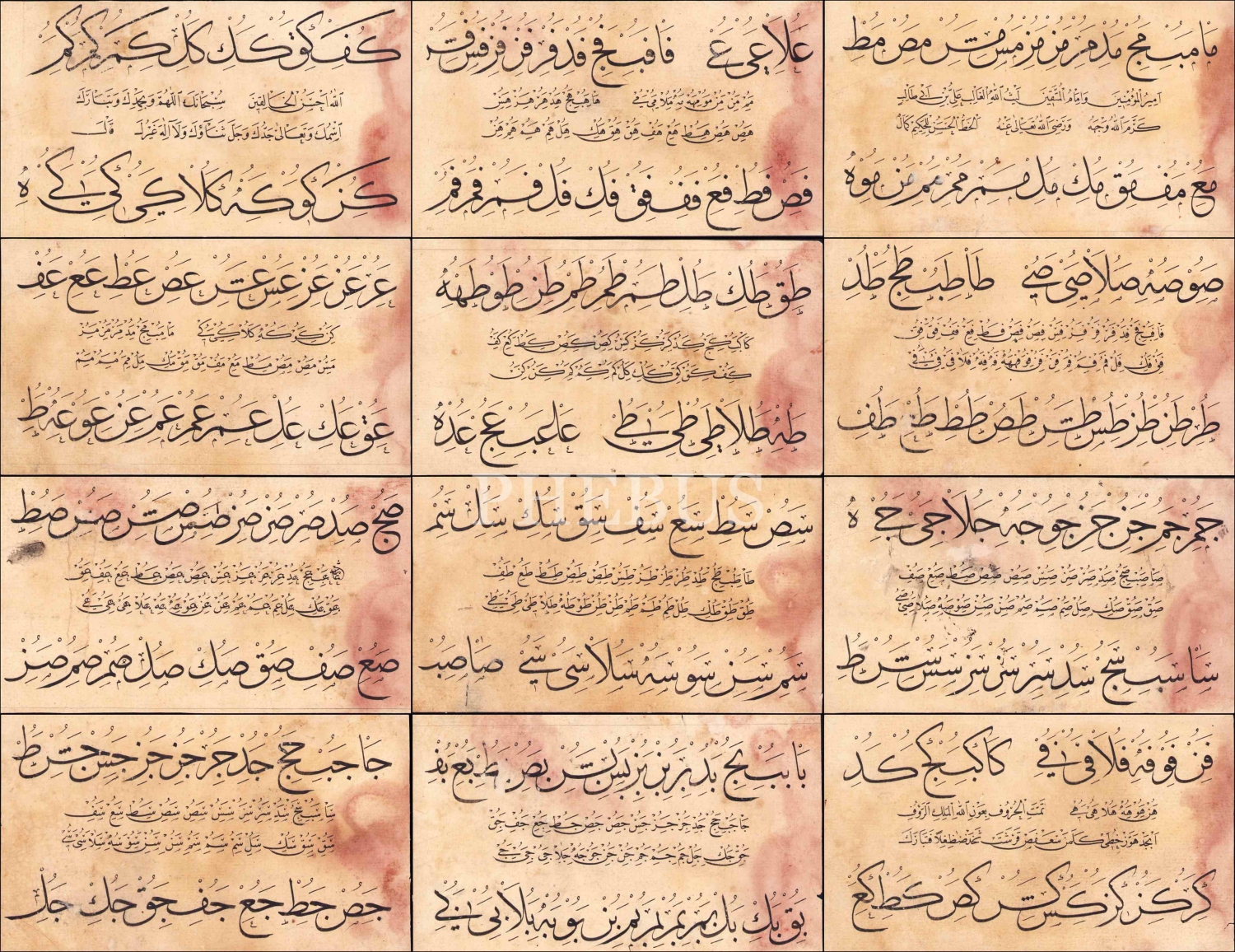 Erken dönem Hoca işi Sülüs Nesih meşk, 12 parça, her biri 20x12 cm