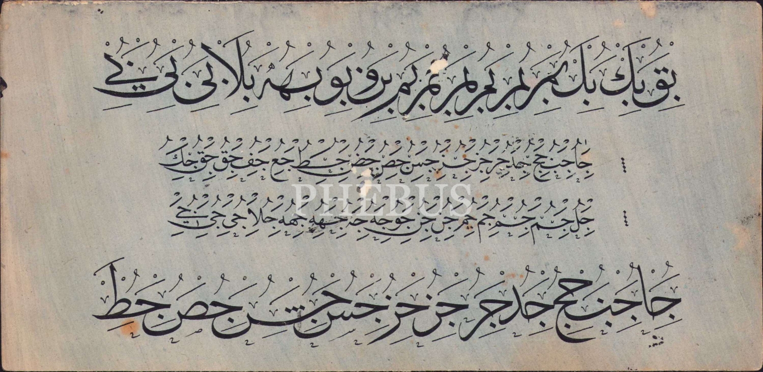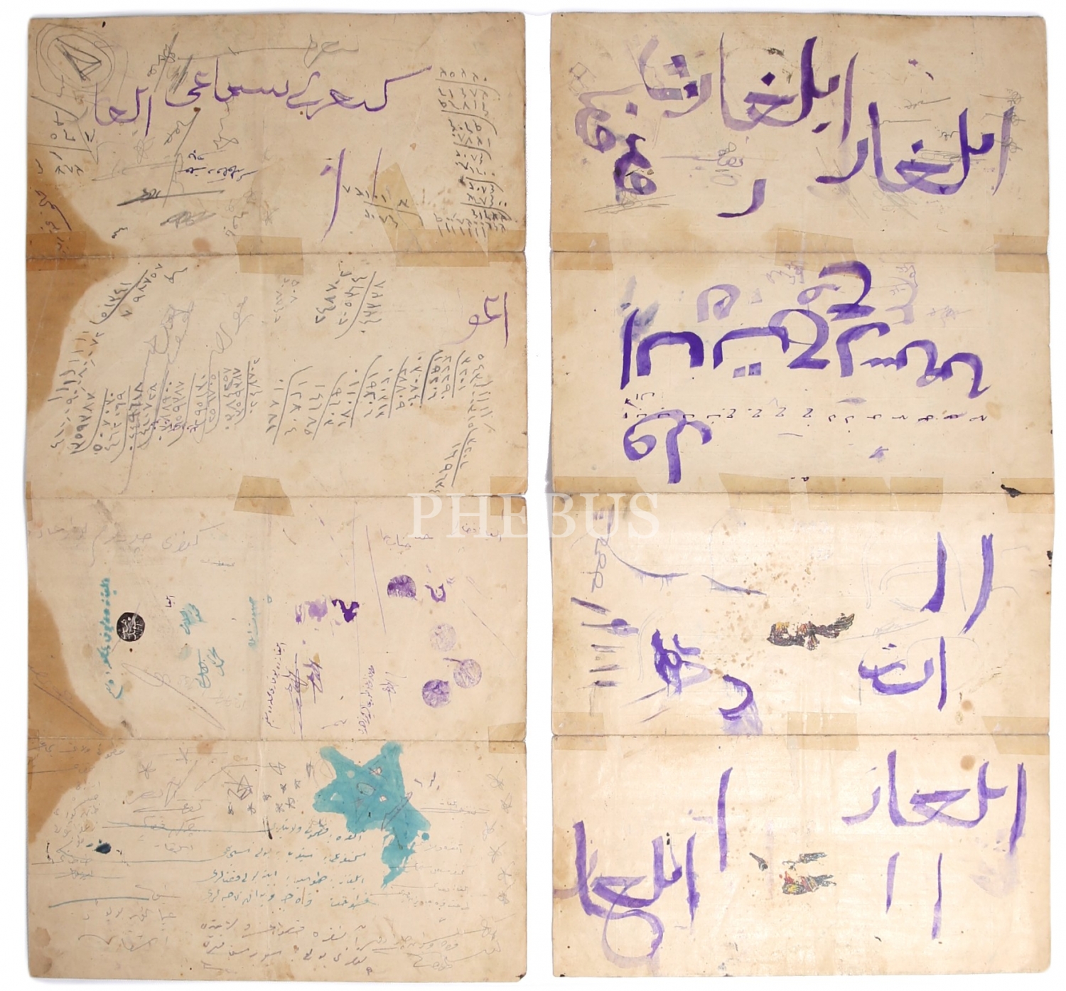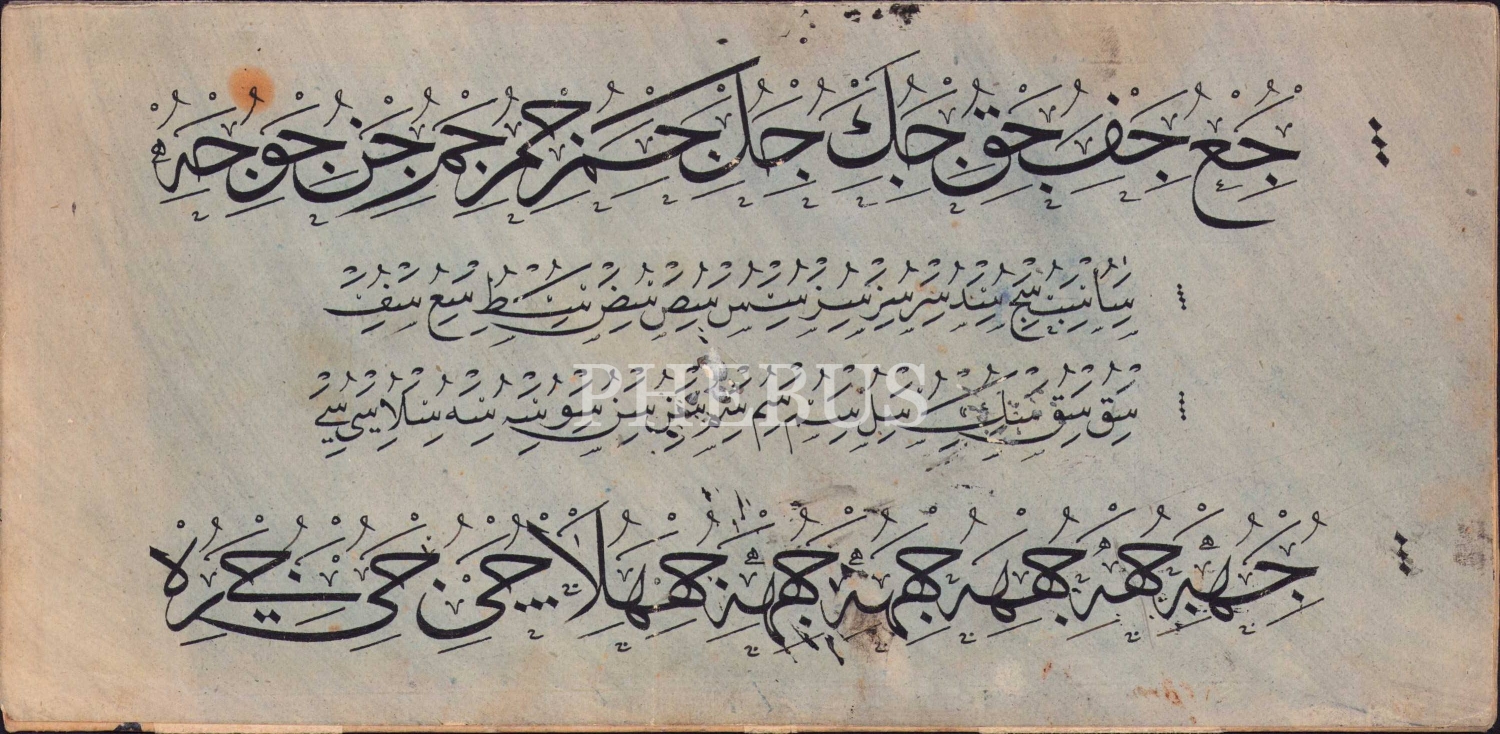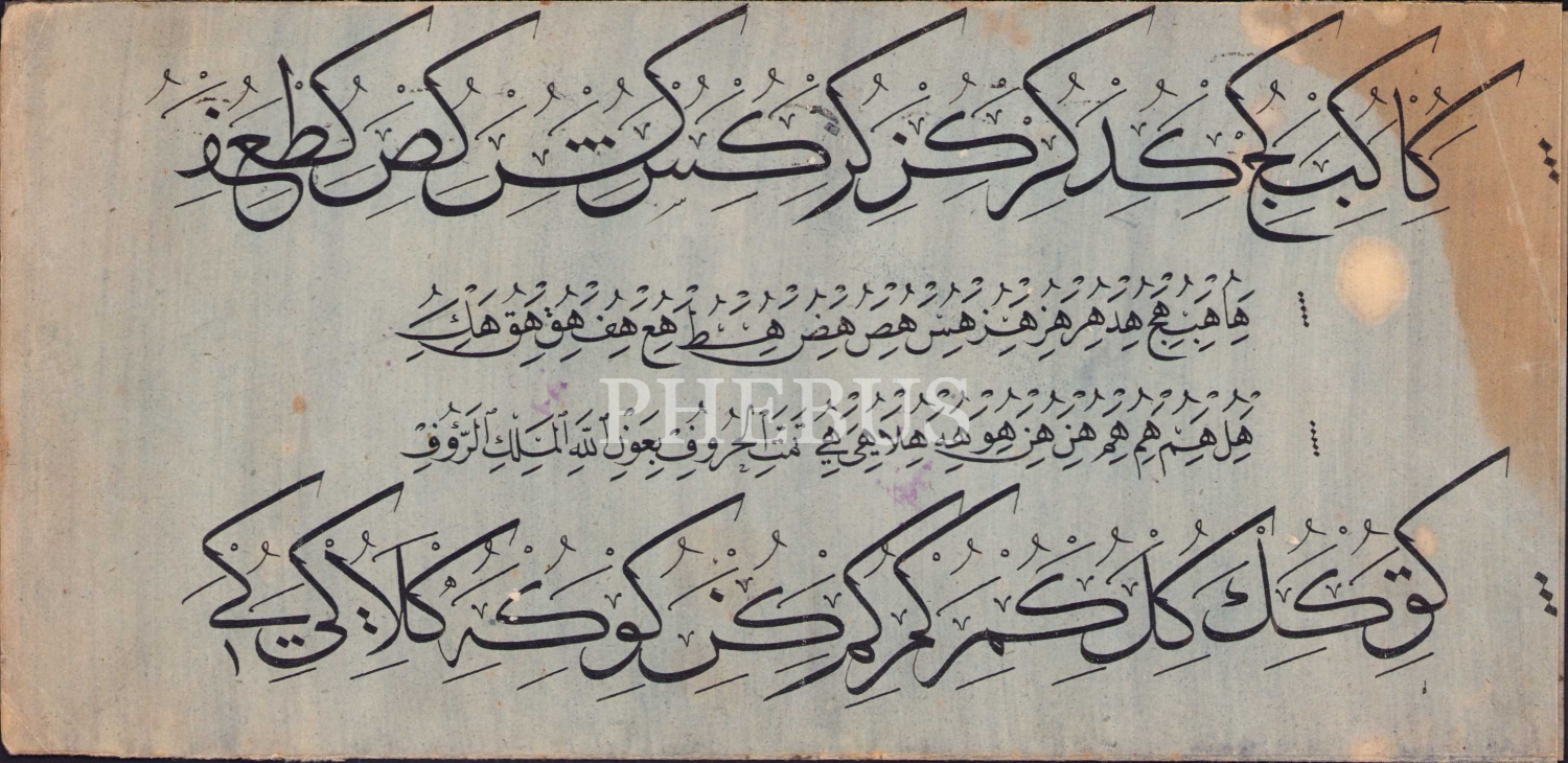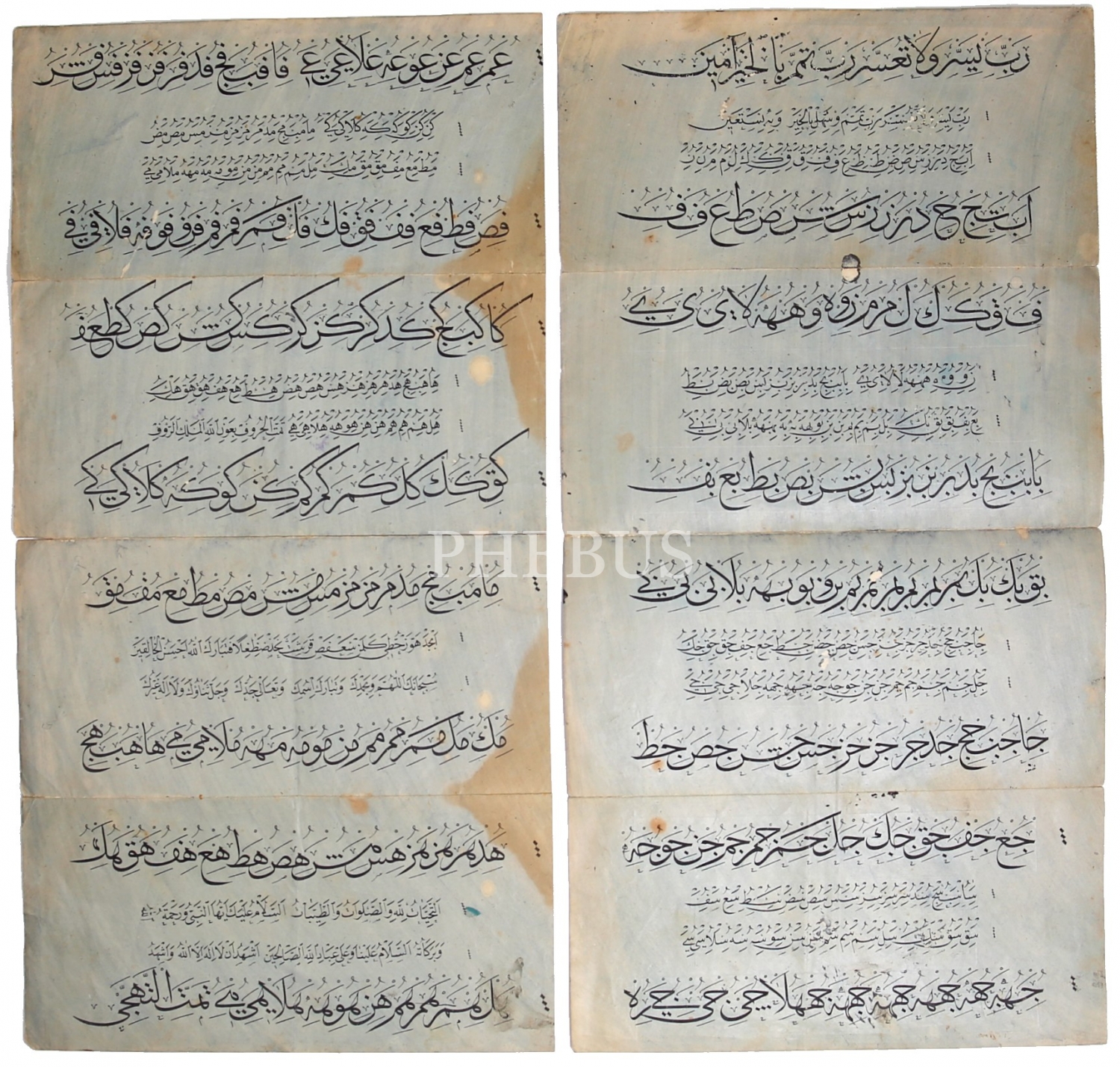 Hoca işi Sülüs Nesih Hurufat meşki, iki adet birleşik halde 4 parça, 25x50 cm