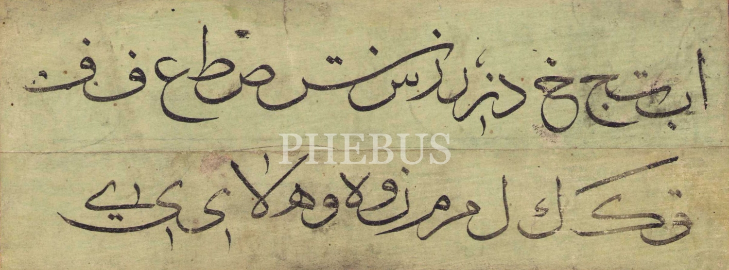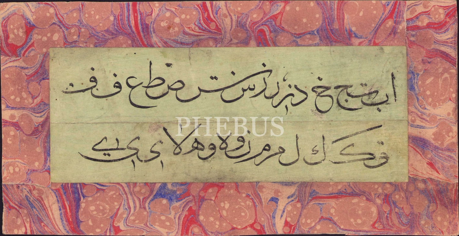 Hoca işi Sülüs hurufat meşki, ebrulu, 20x8 cm