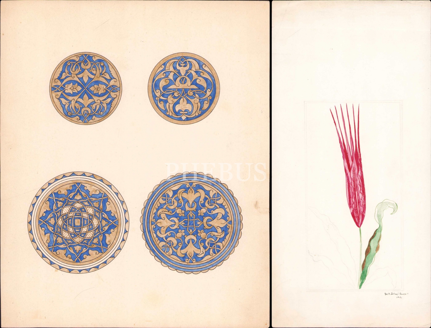 Süheyl Ünver'e ait iki adet çalışma, biri Süheyl Ünver imzalı, 1942 ve 1946 tarihli, 15x30 ve 23x28 cm