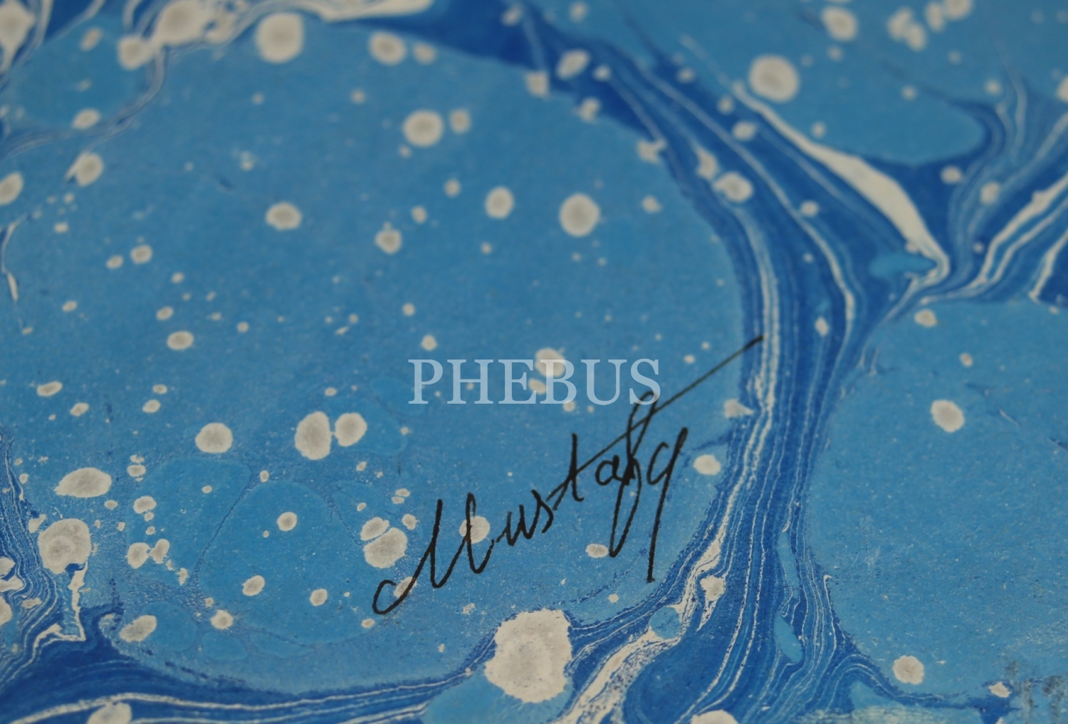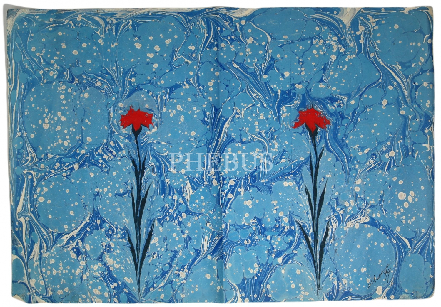 Mustafa Düzgünman imzalı çift çiçekli ebru, 48x24 cm