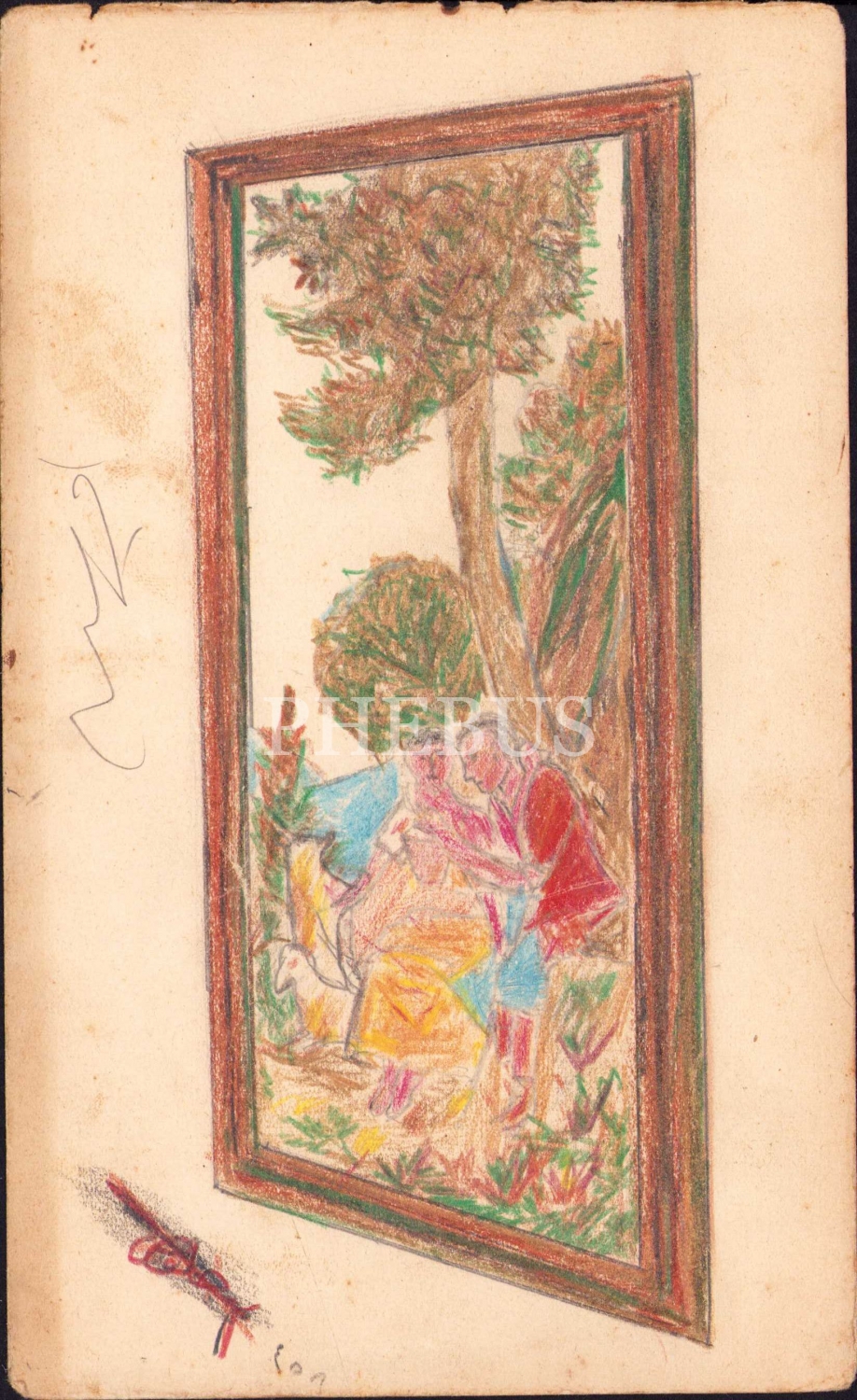 Kara kalemle muhtelif teknik çizim ve M. Hulusi isimli resimlerin bulunduğu defter, 24 varak, 23x14 cm