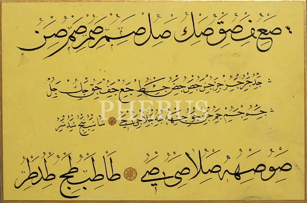 Sülüs Nesih Hurufat meşki, çerçeveli, 23x16 cm