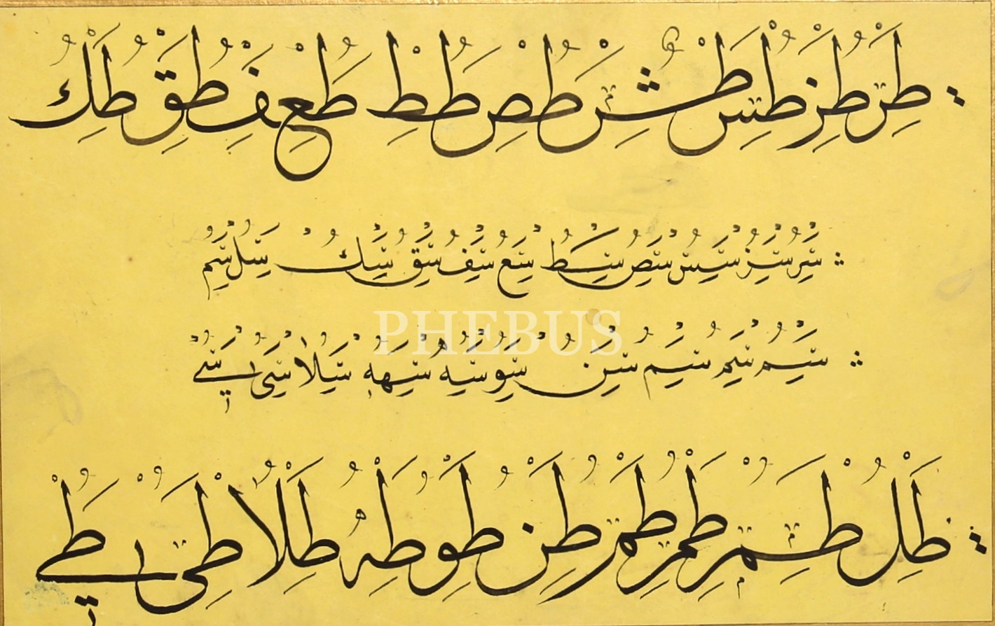 Sülüs Nesih Hurufat meşki, çerçeveli, 23x15 cm