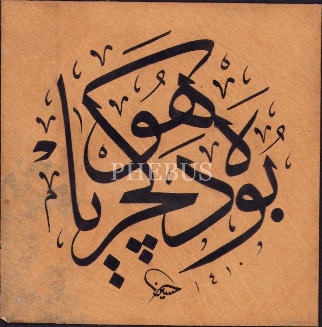 Sülüs yazı, "Bu da geçer ya hu", Hattat Hüseyin Kutlu ketebeli, 9,5x9,5 cm