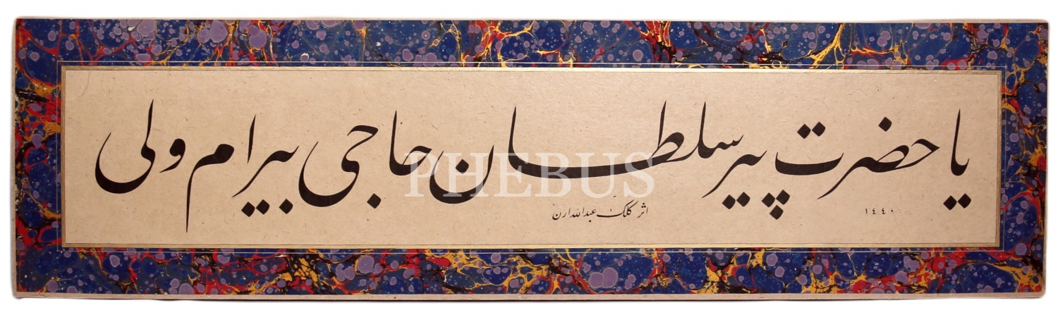 Celi Talik yazı, "Ya Hazret-i Pir Sultan Hacı Bayram-ı Veli, Abdullah Eren ketebeli, ebrulu, 75x14 cm