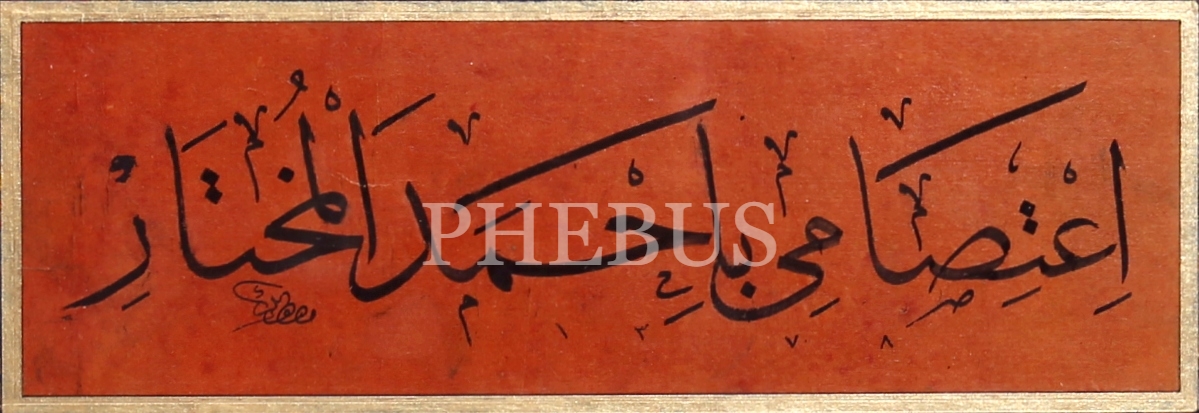 Sülüs Levha, Mustafa Bekir Pekten ketebeli, 20x8 cm