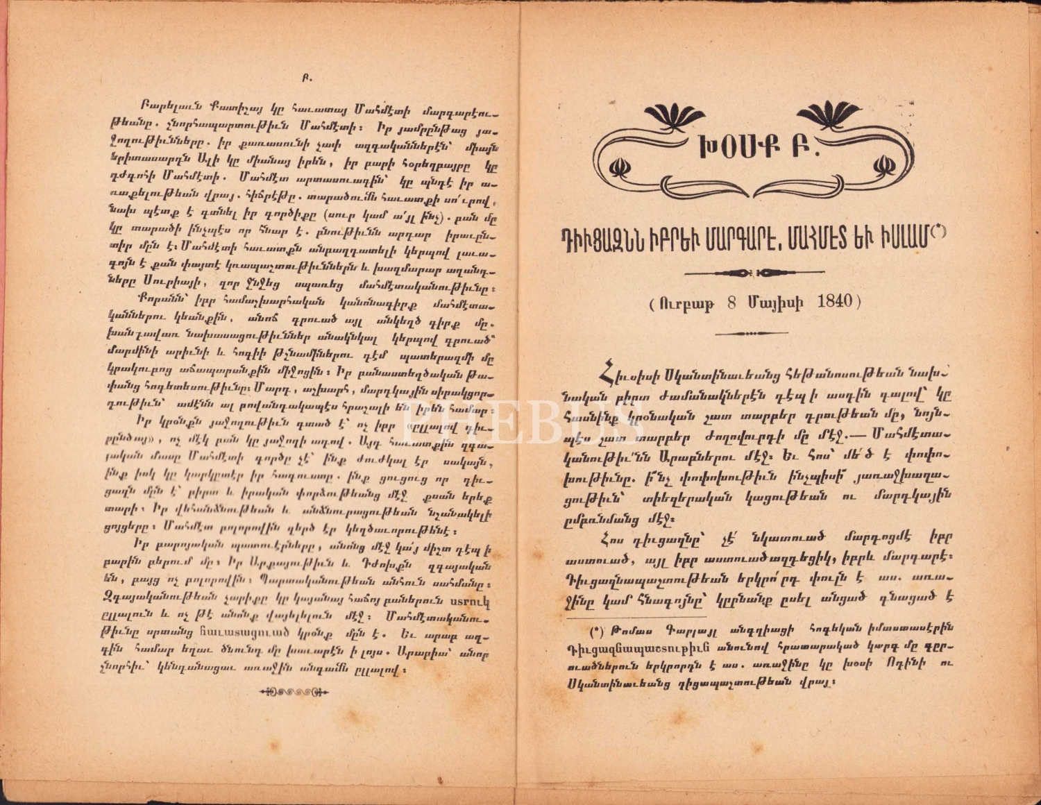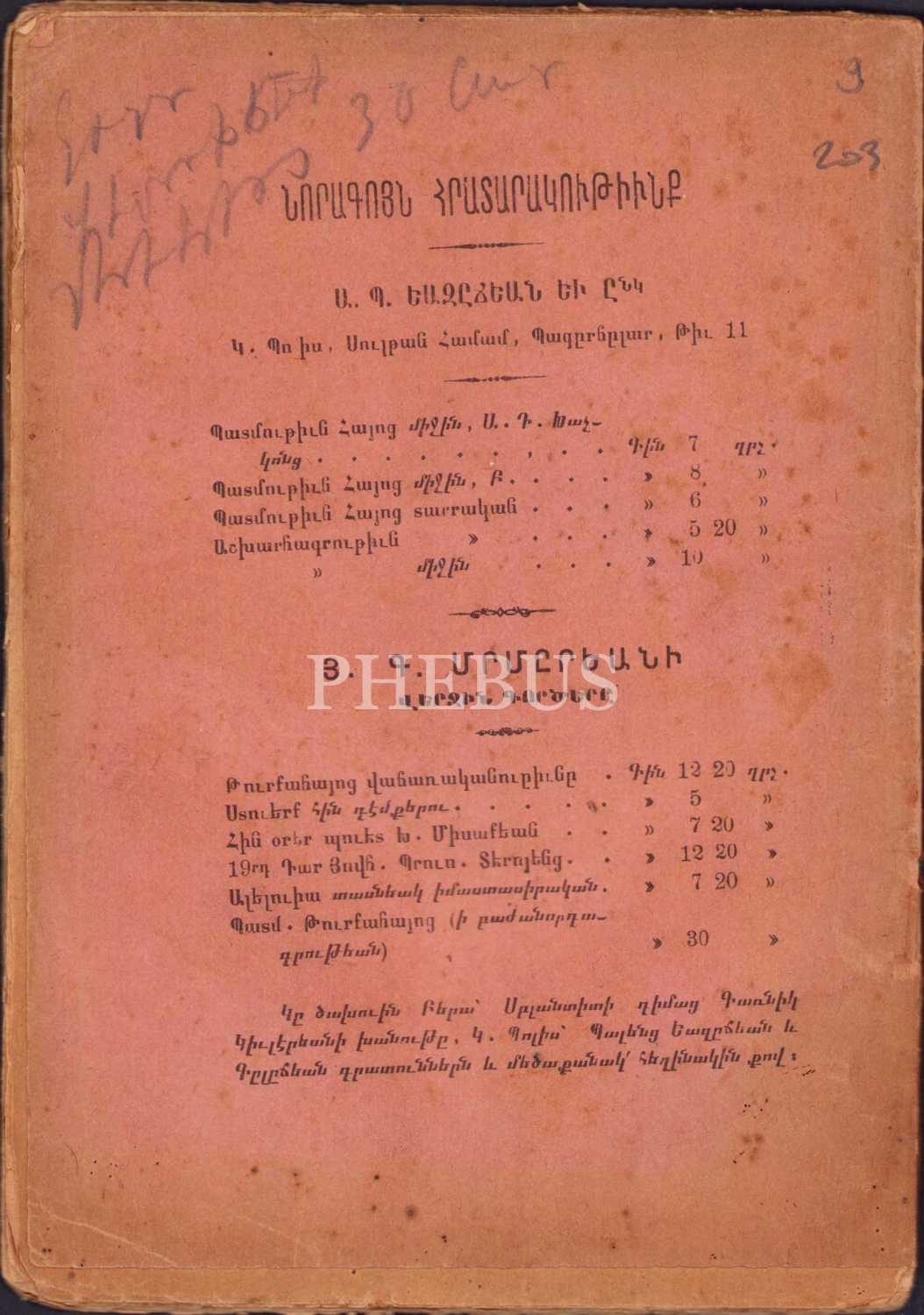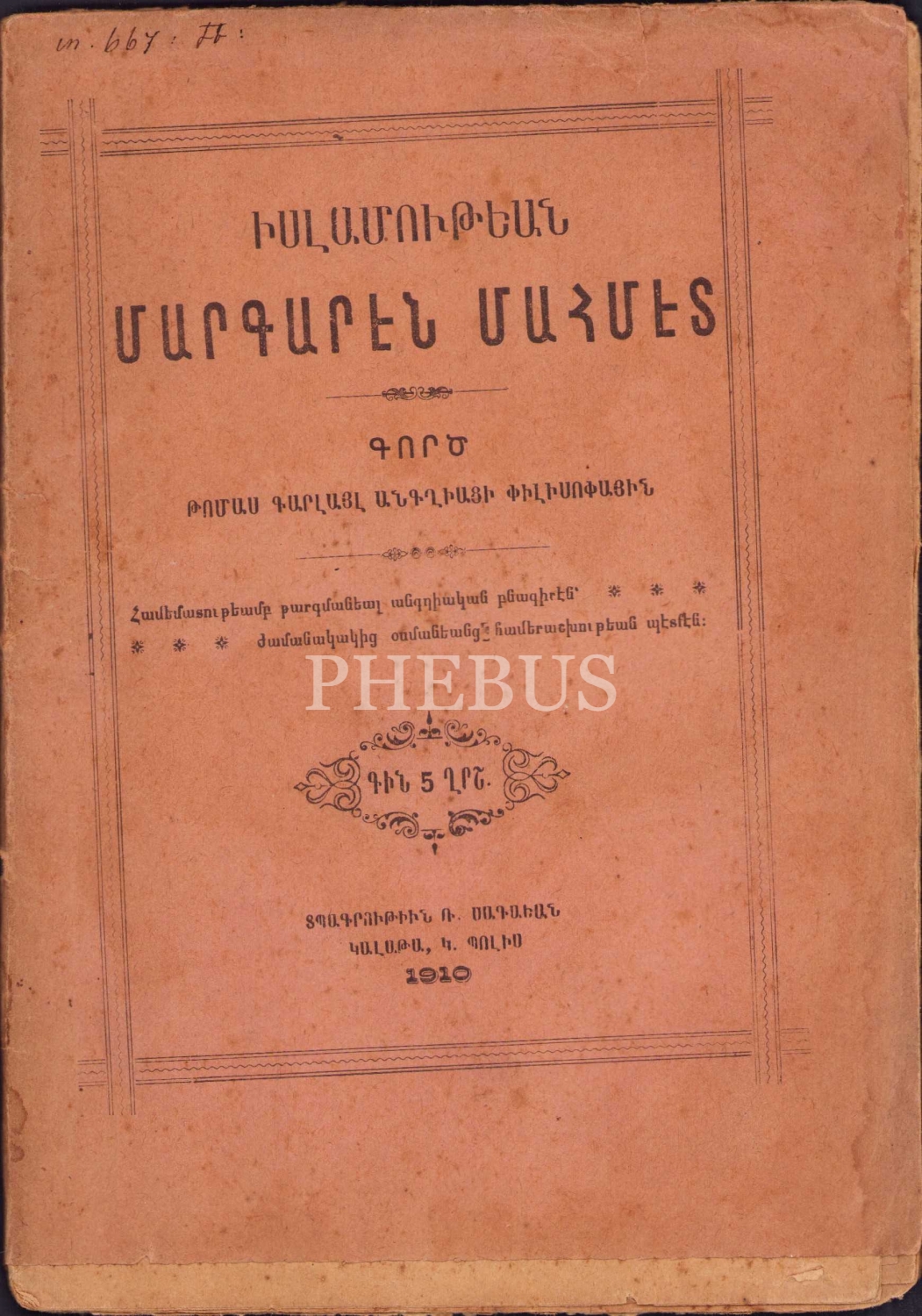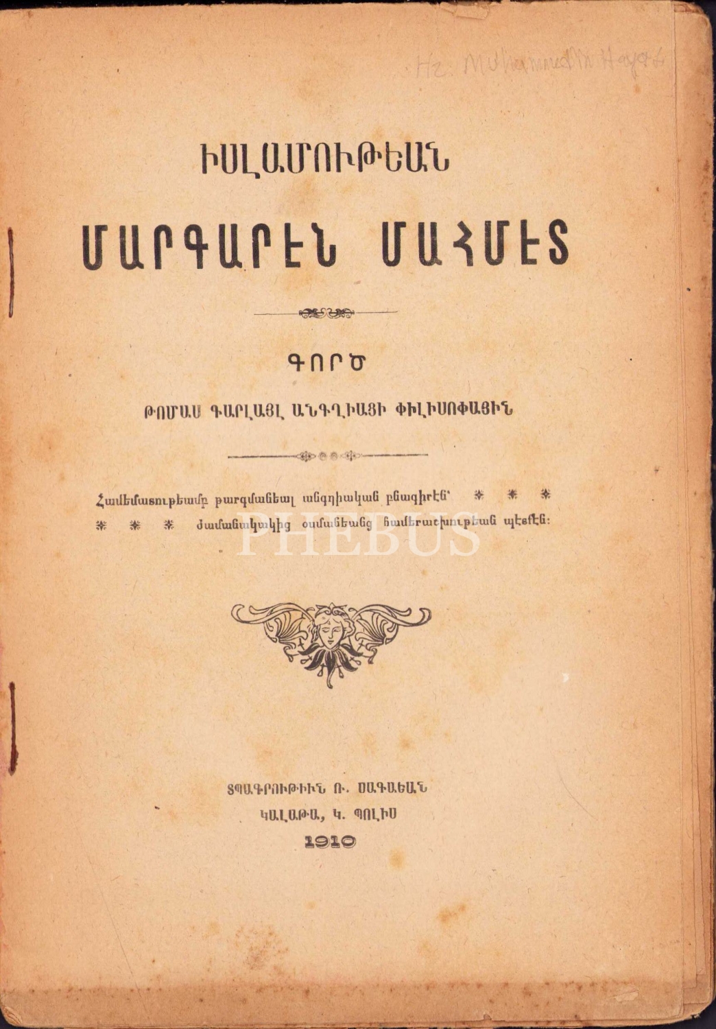 Hz. Muhammed'in hayatı ile alakalı Ermenice eser, İstanbul baskı, 1910 baskı, 71 sayfa, 15x22 cm