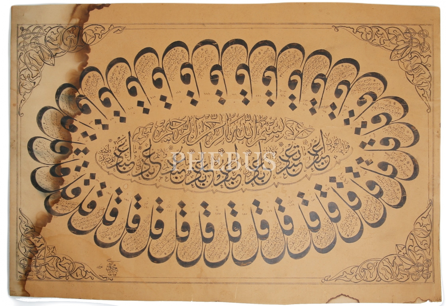 Sülüs Nesih ve Talik Muhtelif Ayet-i Kerimeler ve "Besmele" yazılı levha, haliyle, 1363 tarihli, Hacı Mahmud ketebeli, 70x50 cm