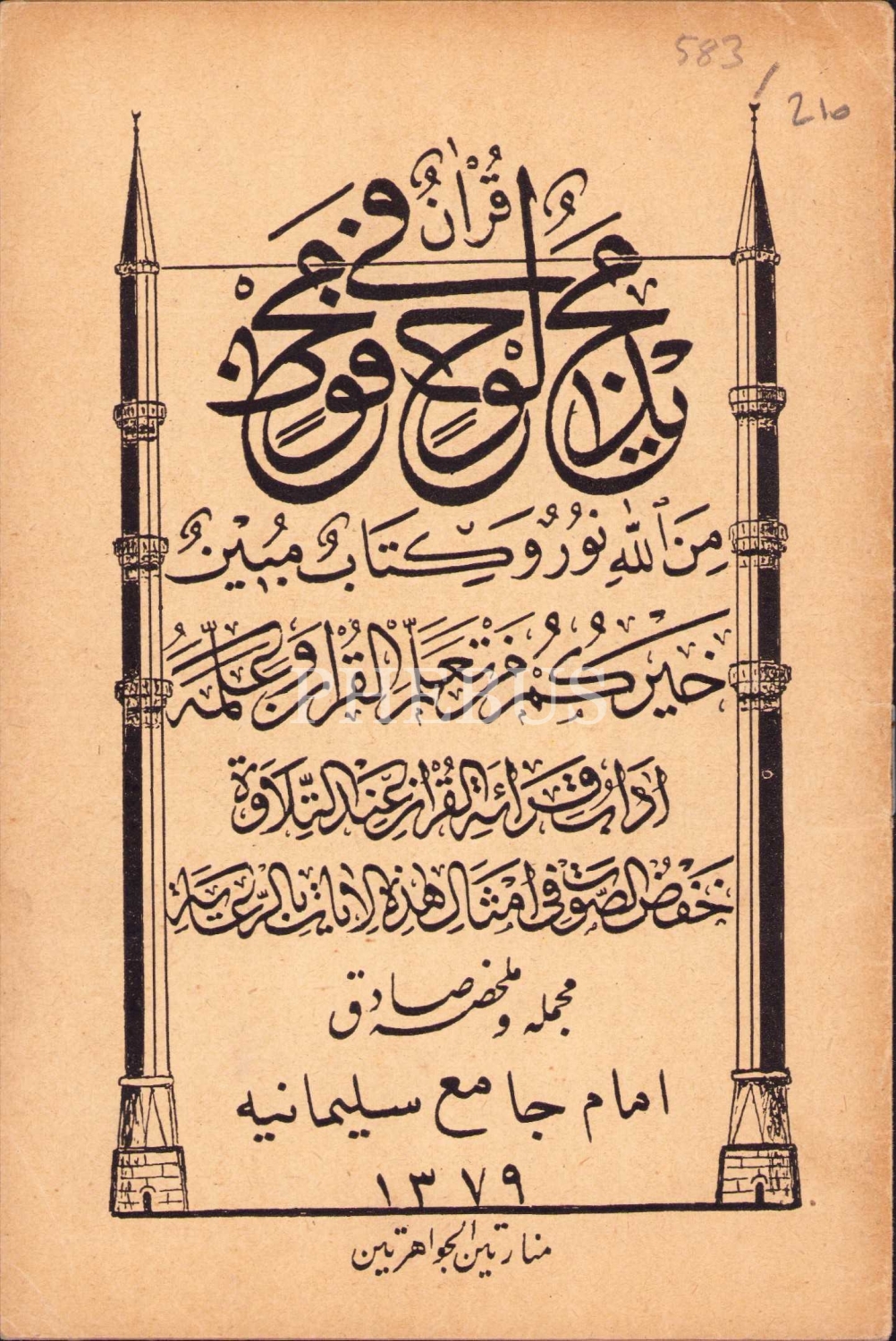 Matbu Muhtelif yazı ve Arapça ifadelerin yer aldığı matbu eser, Süleymaniye Camii İmamı, 1389 tarihli, 15 sayfa, 12x10 cm
