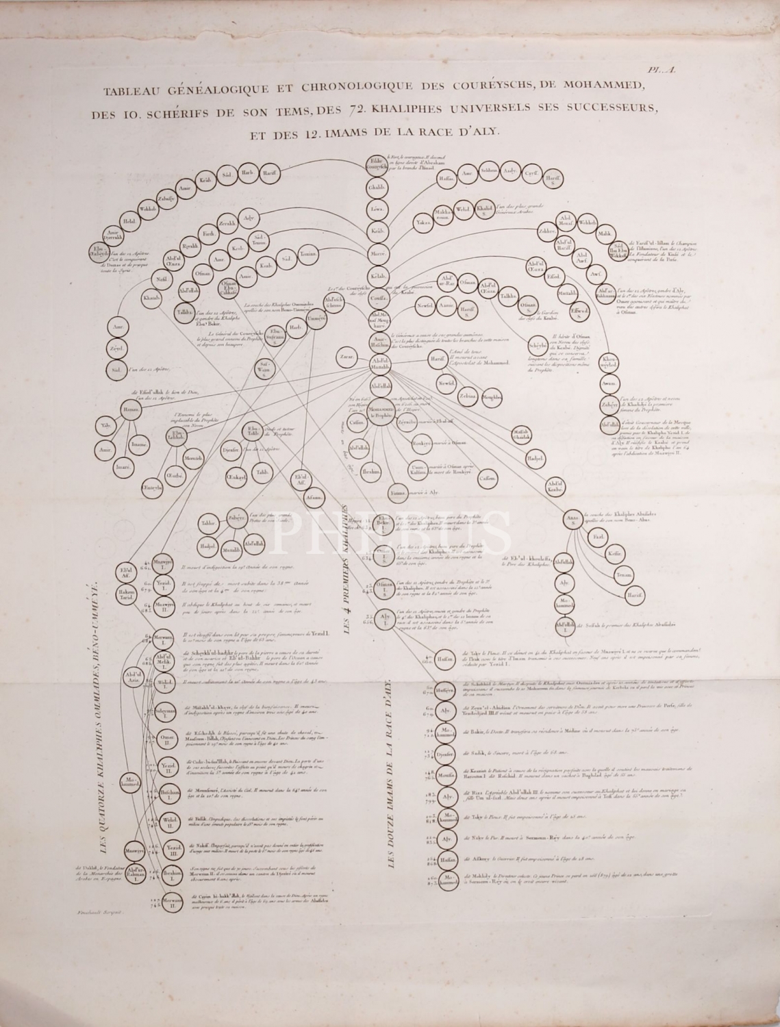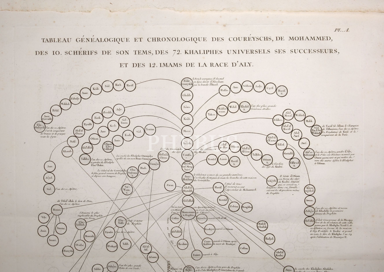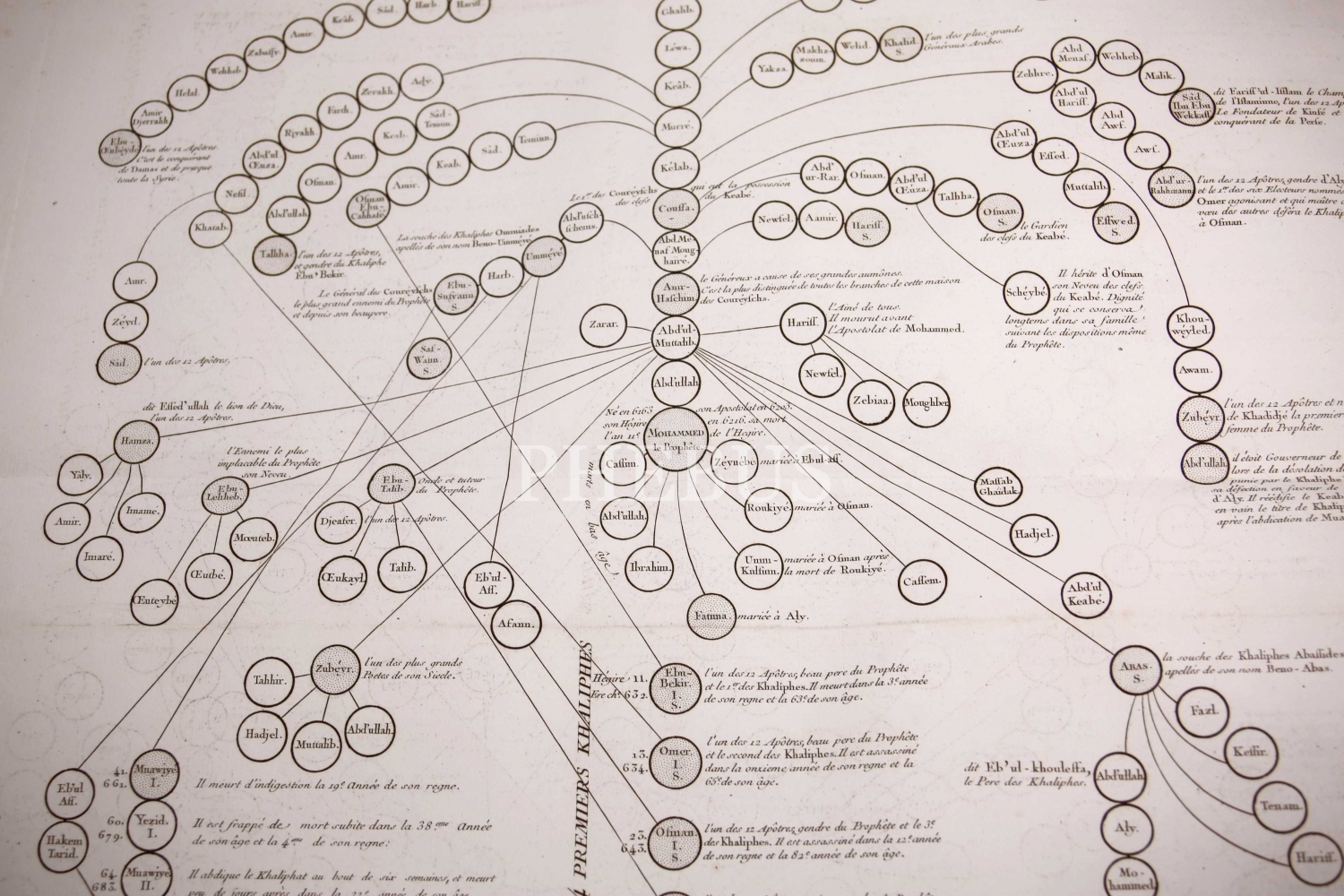 Hz. Muhammed'in Fransızca şeceresi, D'ohsson Mouradgea, 1787, Tableau Generalogique et chronologique des coureyschs de Mohammed, 52x66 cm