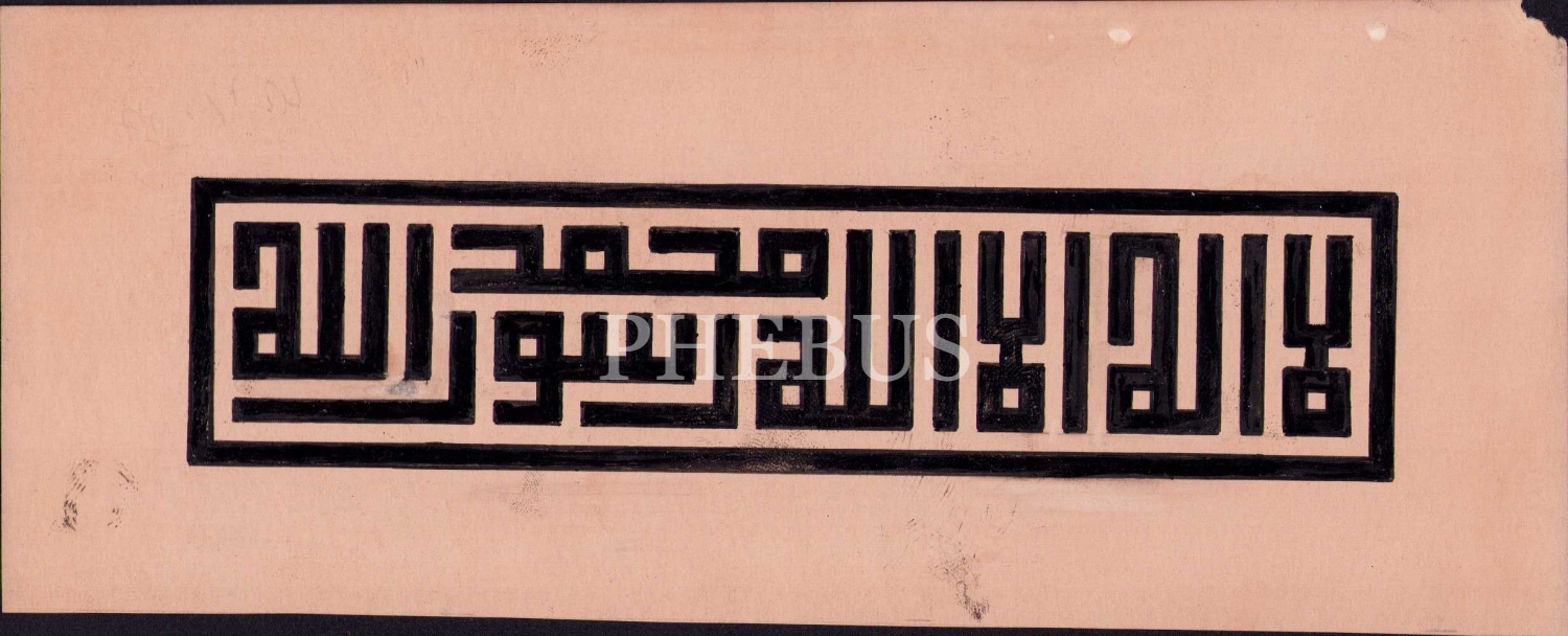 Kufi yazı, "La İlahe İlllallah Muhammed Resulullah", 21x9 cm