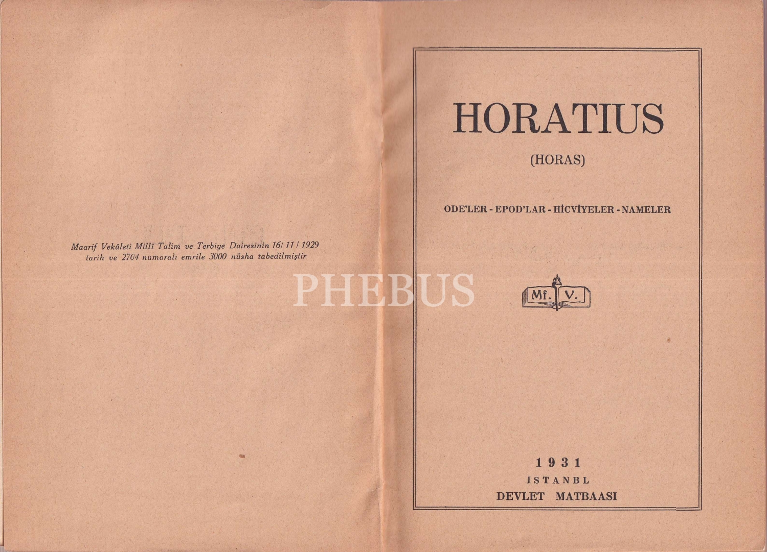 Horatius [Horas], çev., Yakup Kadri, Devlet Matbaası, 1931, İstanbul, 241 sayfa, 13x18 cm
