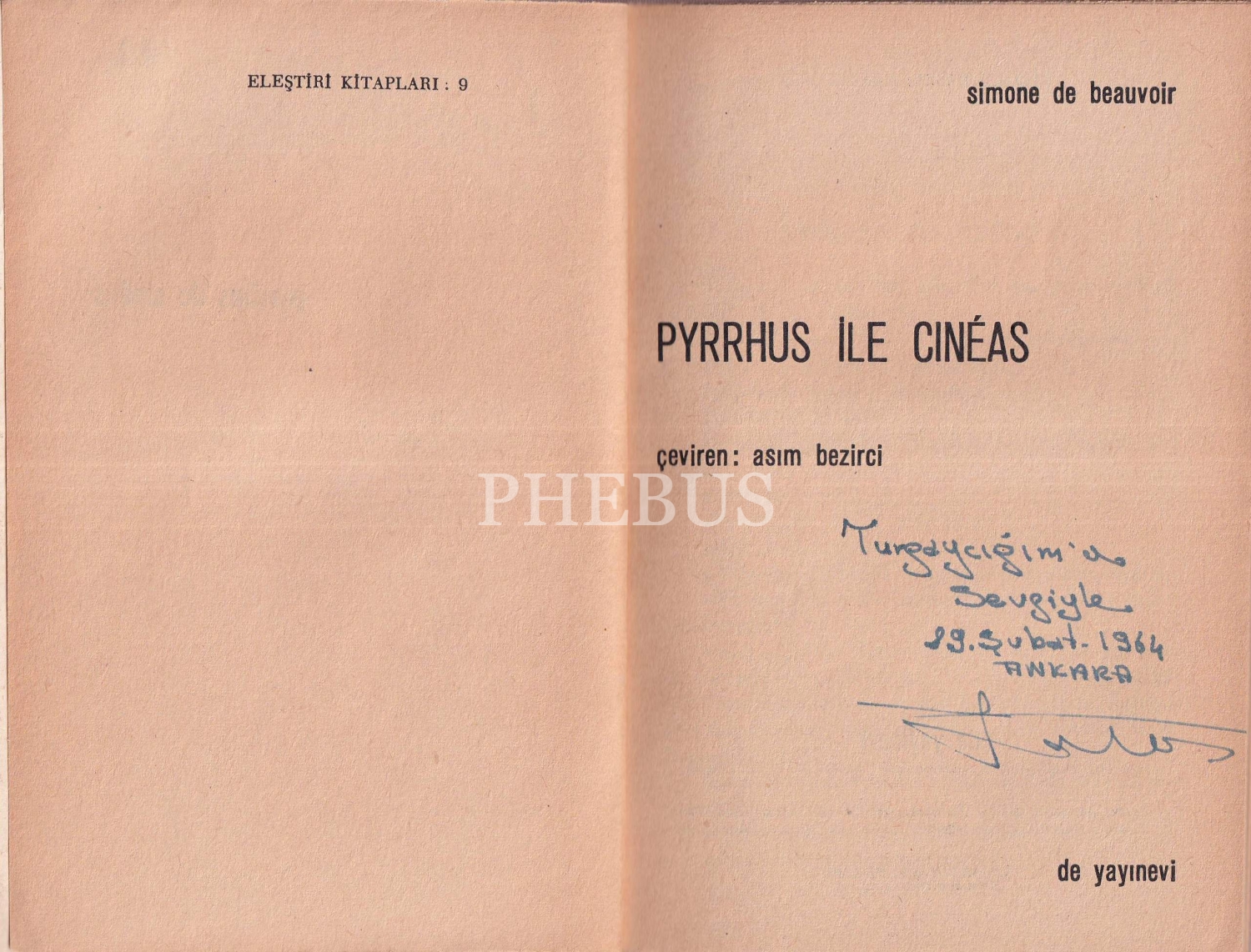 Pyrrhus İle Cineas, Simone de Beauvoir, çev., Asım Bezirci, birinci baskı, İstanbul 1963, Asım Bezirci tarafından Turgay Gönenç'e ithaflı, imzalı, 110 sayfa, 10x15 cm