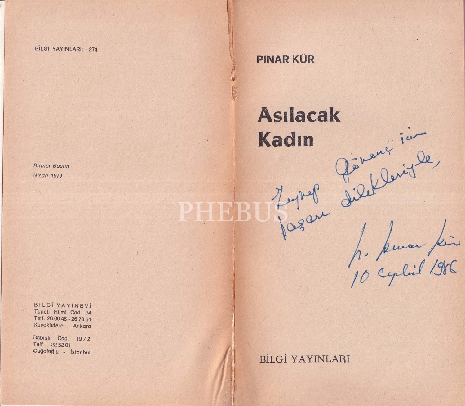 Asılacak Kadın, Pınar Kür, birinci baskı, İstanbul 1979, yazarından Turgay Gönenç'e ithaflı, imzalı, 191 sayfa, 10x19 cm