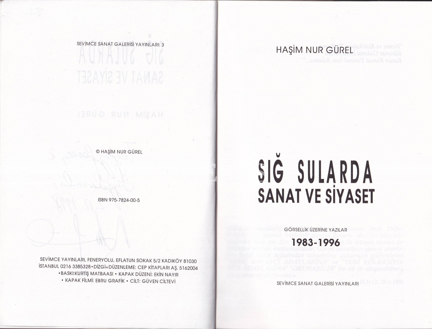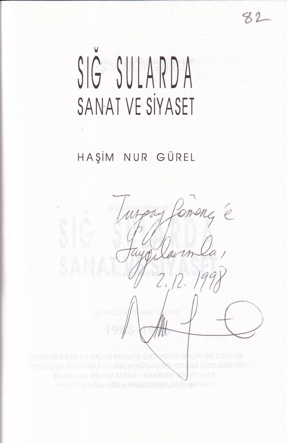 Sığ Sularda Sanat ve Siyaset Görsellik Üzerine Yazılar 1983 - 1996, Haşim Nur Gürel, yazarından Turgay Gönenç'e ithaflı, imzalı, 199 sayfa, 13x19 cm