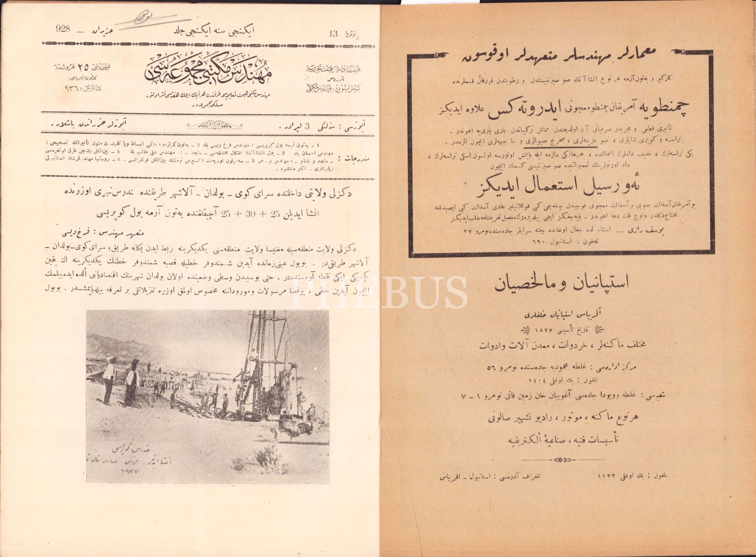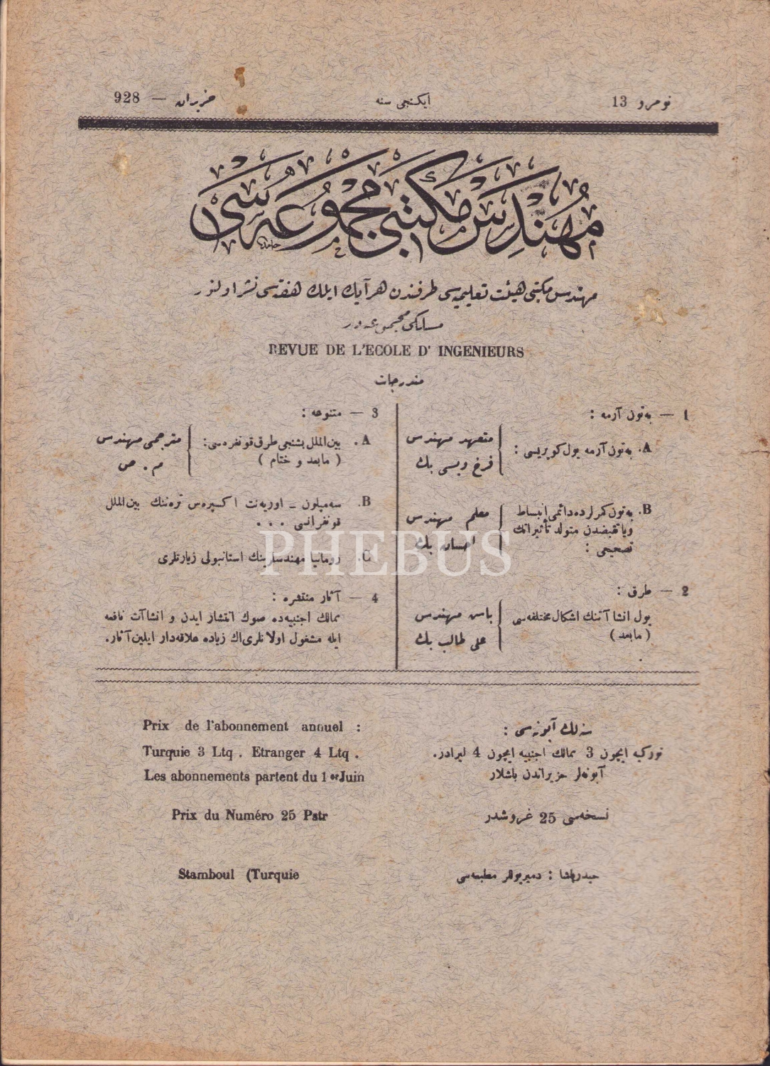 Mühendis Mektebi Mecmuası - aylık dergi, Haziran 1928, sayı: 13, Demiryolları Matbaası, Haydarpaşa, bol reklamlı, resimli,Osmanlıca - Fransızca, 32 sayfa, 19x26 cm