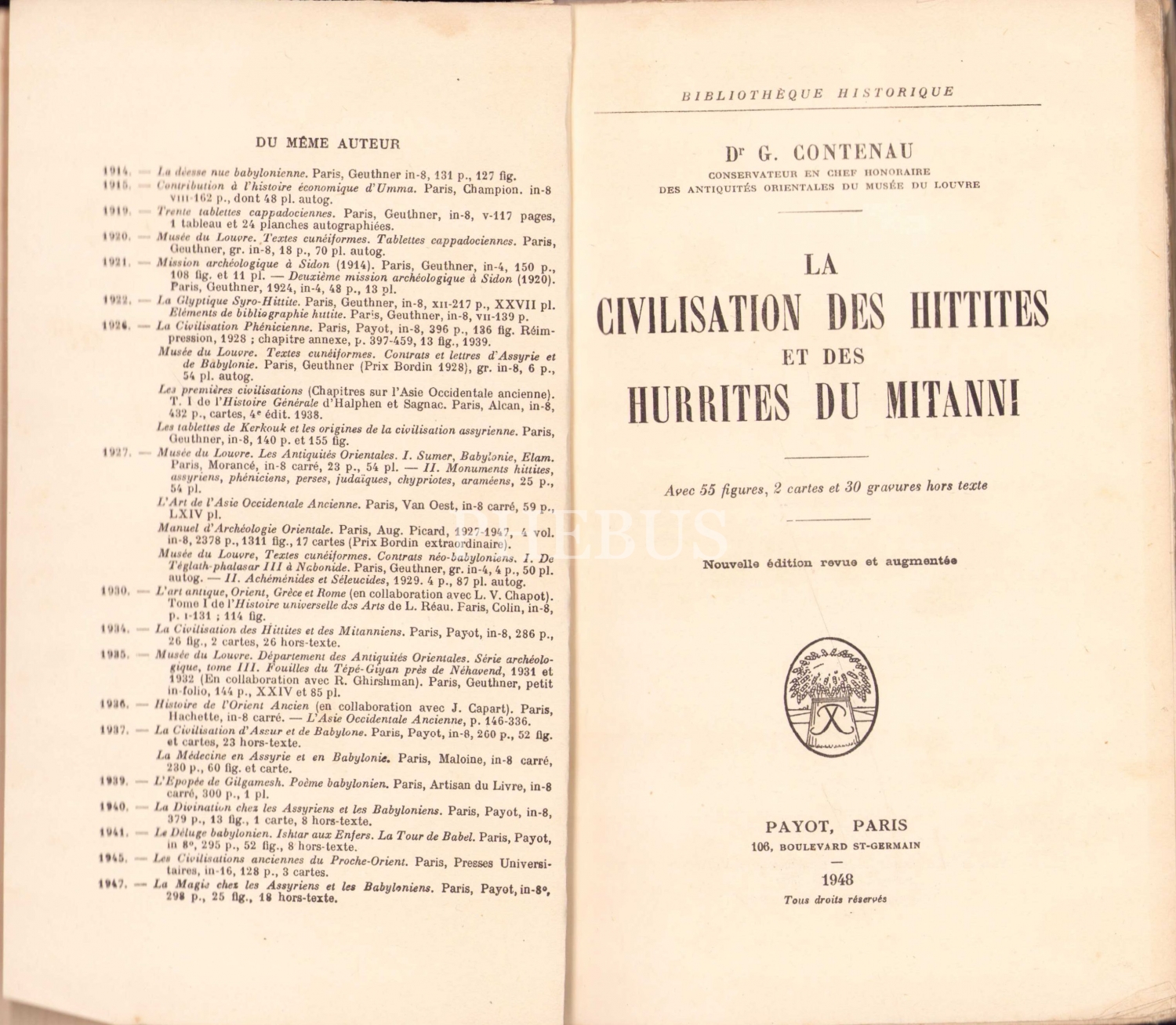 La Civilisation Des Hittites Et De Hurrites Du Mitanni, Dr. G. Contenau, Paris, 1948, Fransızca, resimli, 200 sayfa, 13x22 cm
