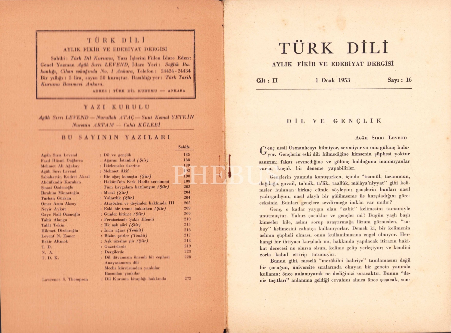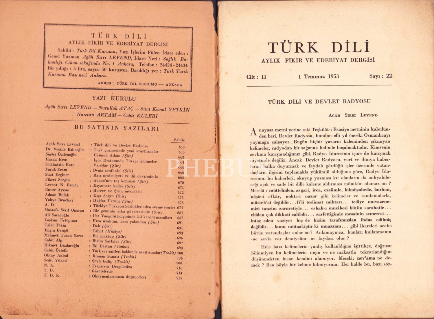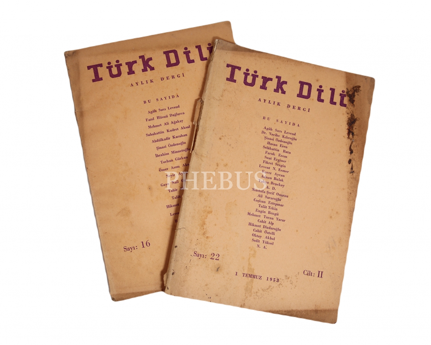 Türk Dili - aylık fikir ve edebiyat dergisi, 1953 - 56 yılına ait 3 sayı mevcut, 15x22 cm
