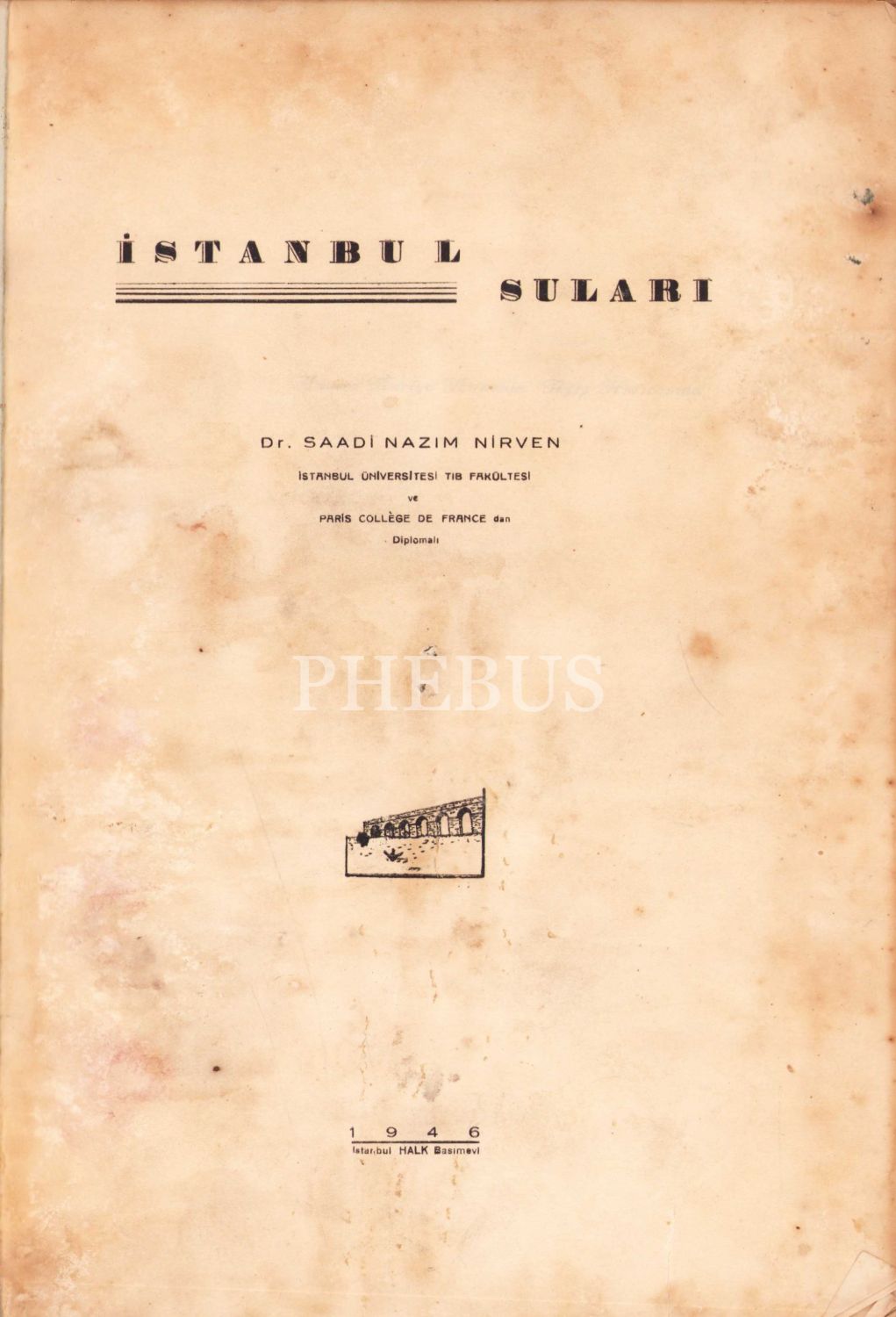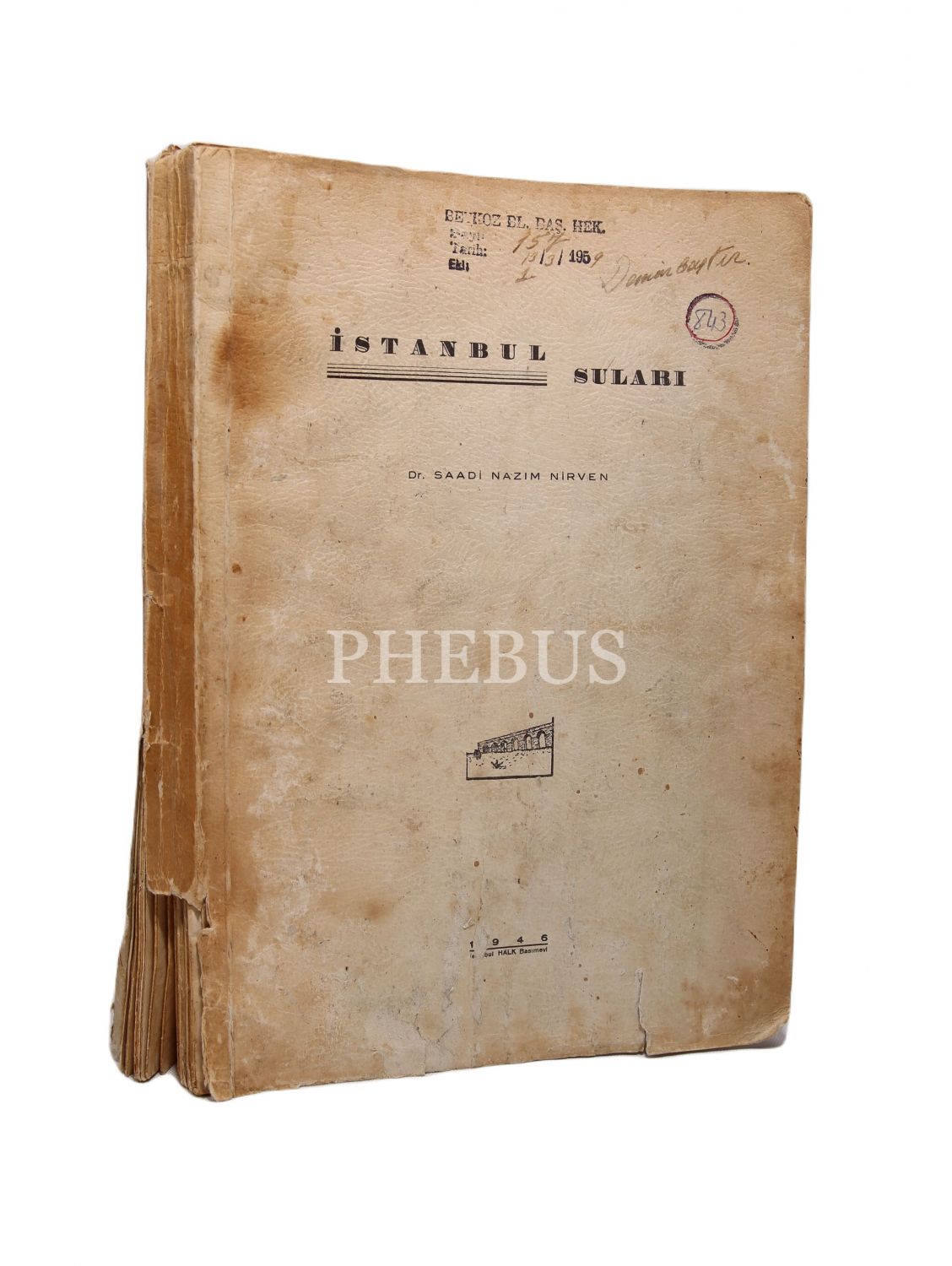 İstanbul Suları, Saadi Nazım Nirven, İstanbul Halk Basımevi, 1946, haliyle, 240 sayfa, 19x27 cm