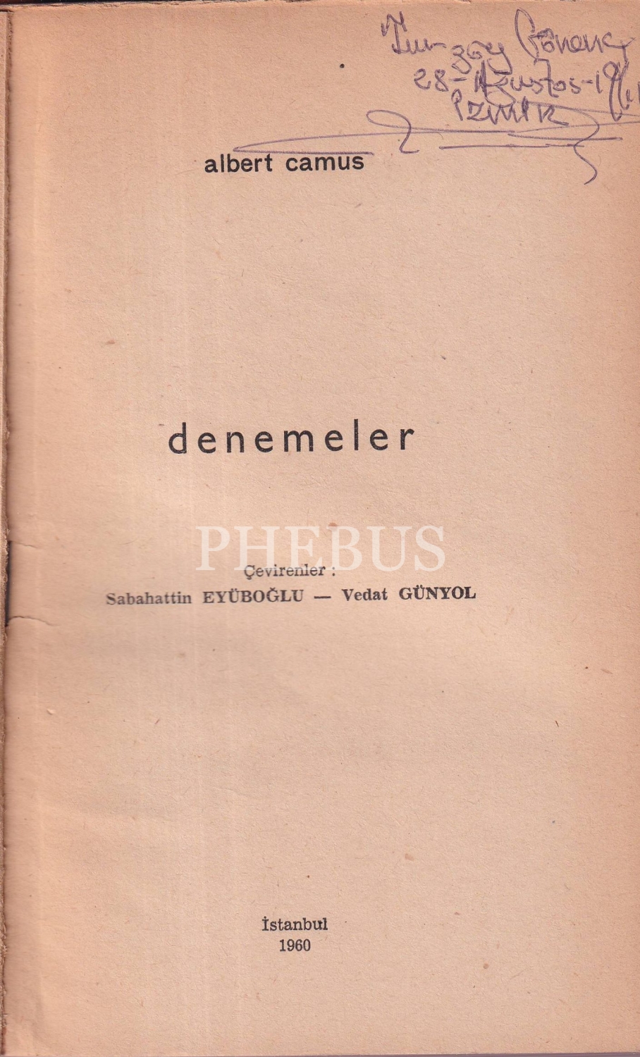 Denemeler, Albert Camus, çev., S. Eyüboğlu - V. Günyol, İstanbul 1960, 103 sayfa, 12x19 cm