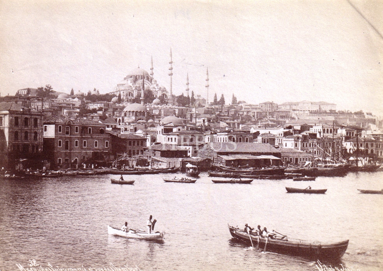 Constantinople, Haliç'te Sandalcılar Sebah & Joaillier Fotoğrafhanesi Sepya Fotoğraf 12 x 16,5 Cm