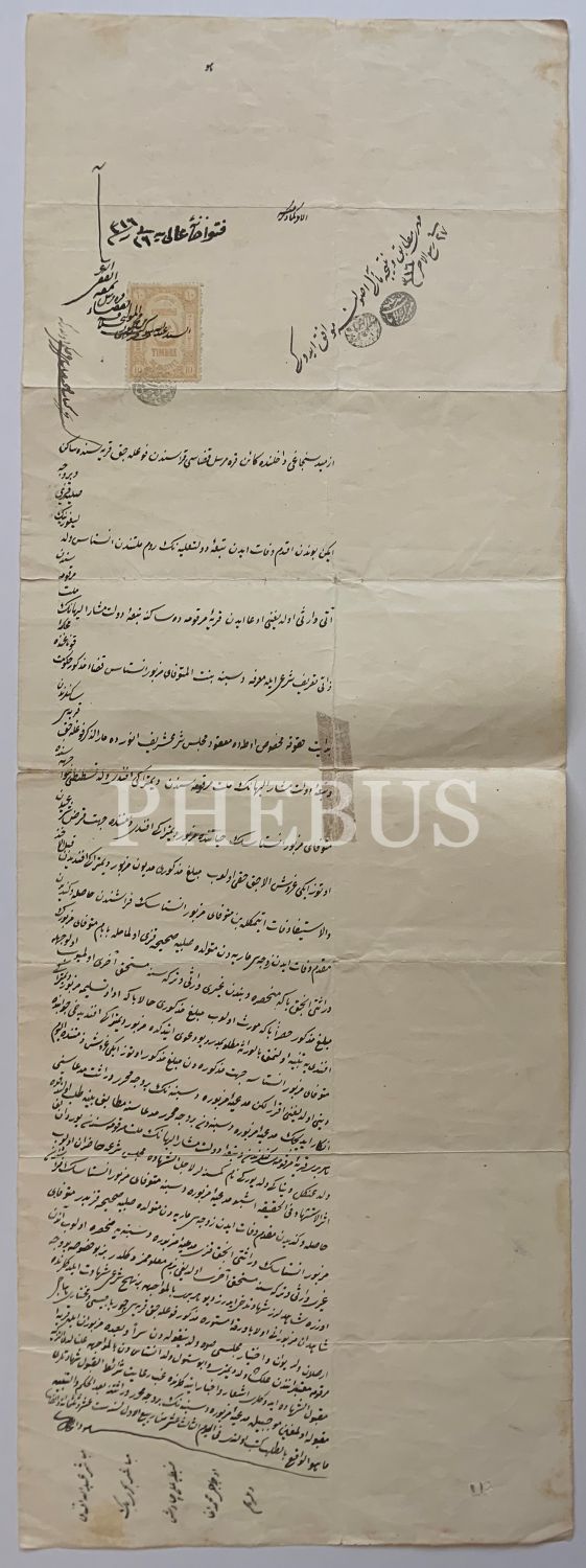 Osmanlıca, İzmit Sancağı Dahilinde Karamürsel Karyesinde Rum Milletinden Anastas Veledi Ligornik'in Vefatı Üzerine Varisleri Arasındaki Veraset Davası Hücceti 20 x 57 Cm