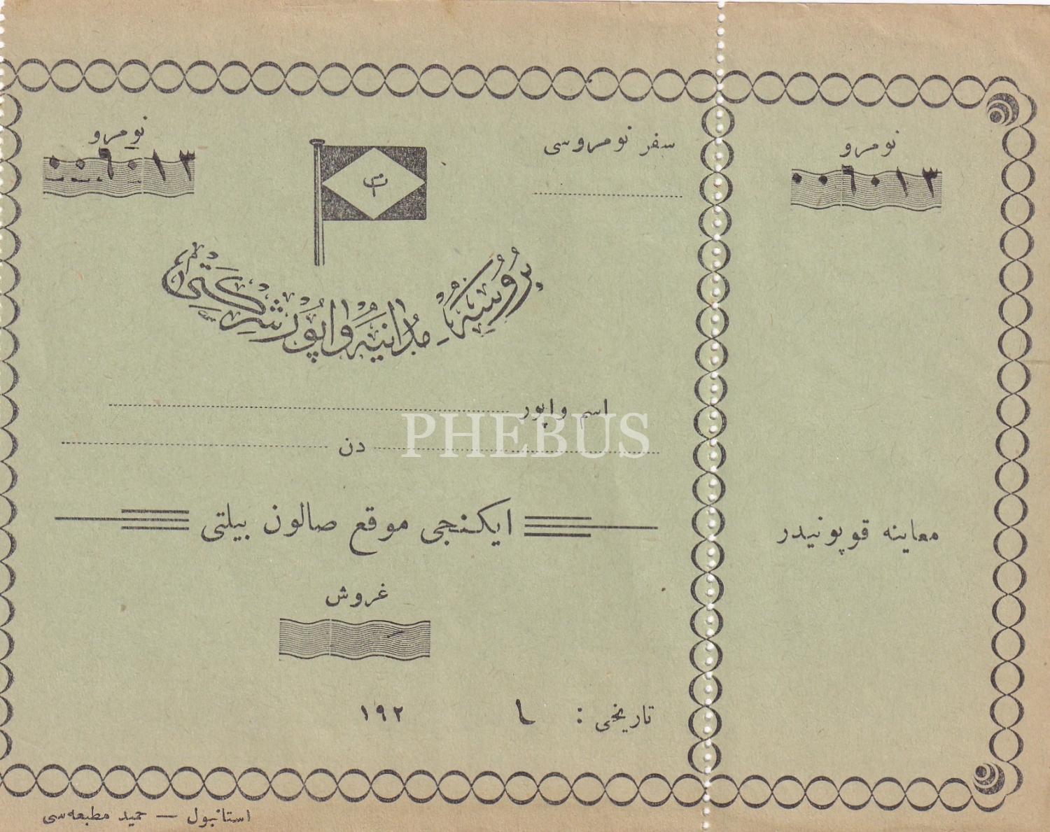 Osmanlıca Bursa-Mudanya Vapur Şirketi 2. Mevki Bileti