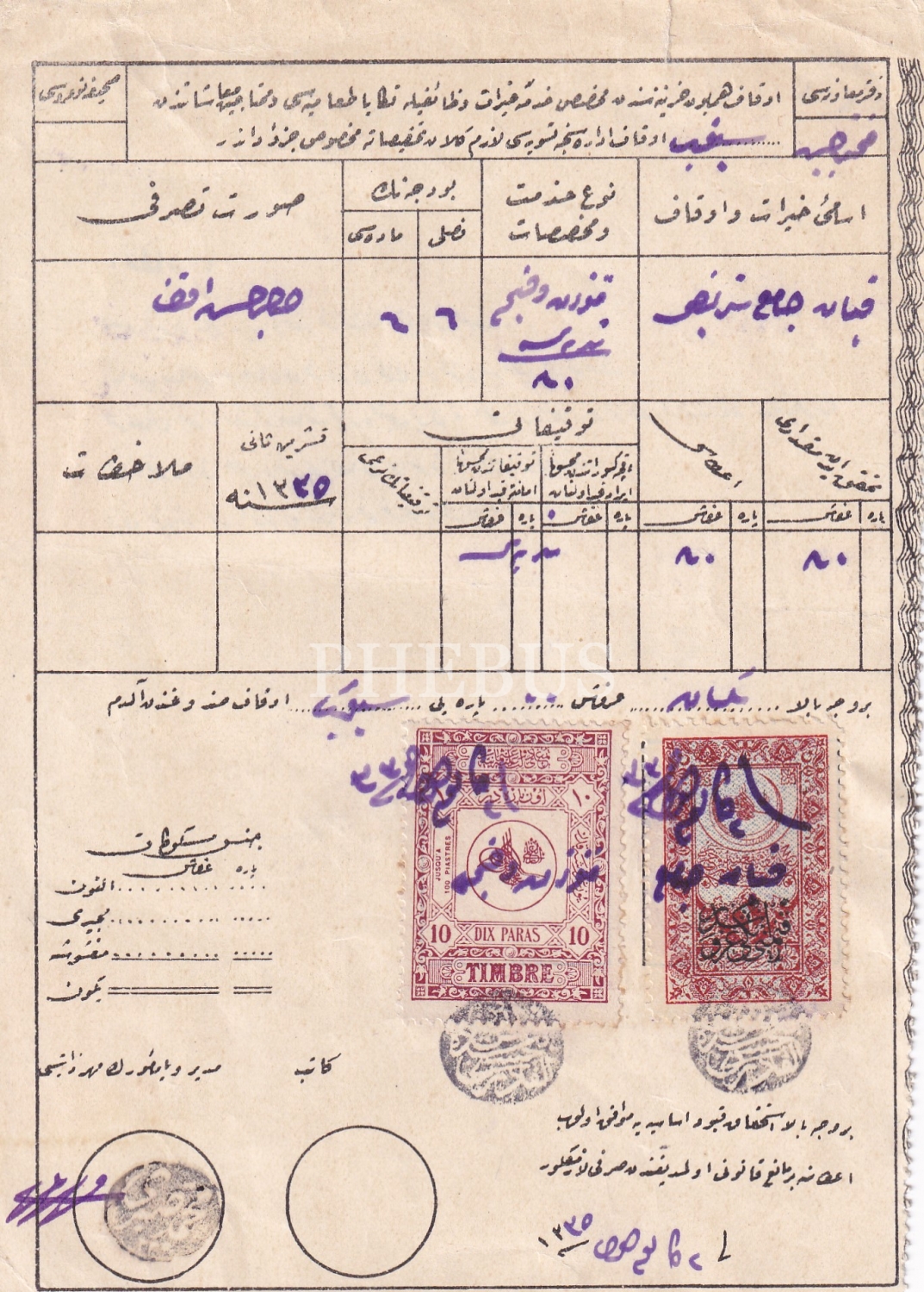 Hicaz Demiryolu Fiskal Pullu Evkaf Ödemesi Evrakı