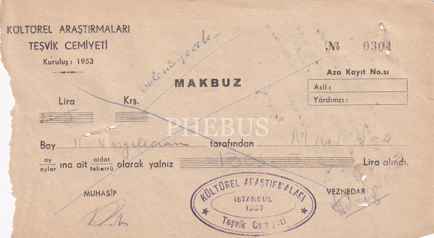 İstanbul Kültürel Araştırmaları Teşvik Cemiyeti Makbuzu