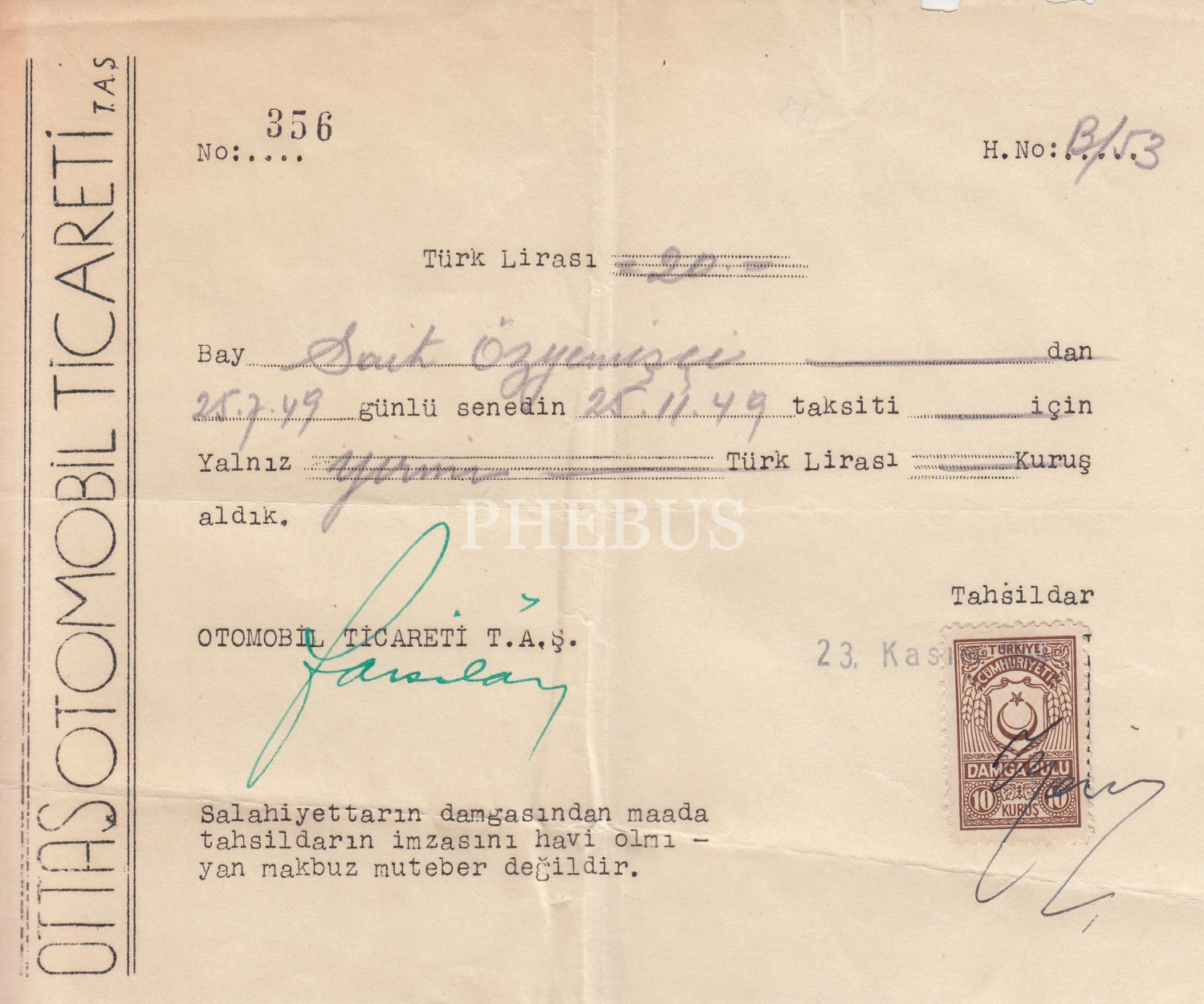 Ottaş Otomobil Ticareti Şirketi Makbuzu