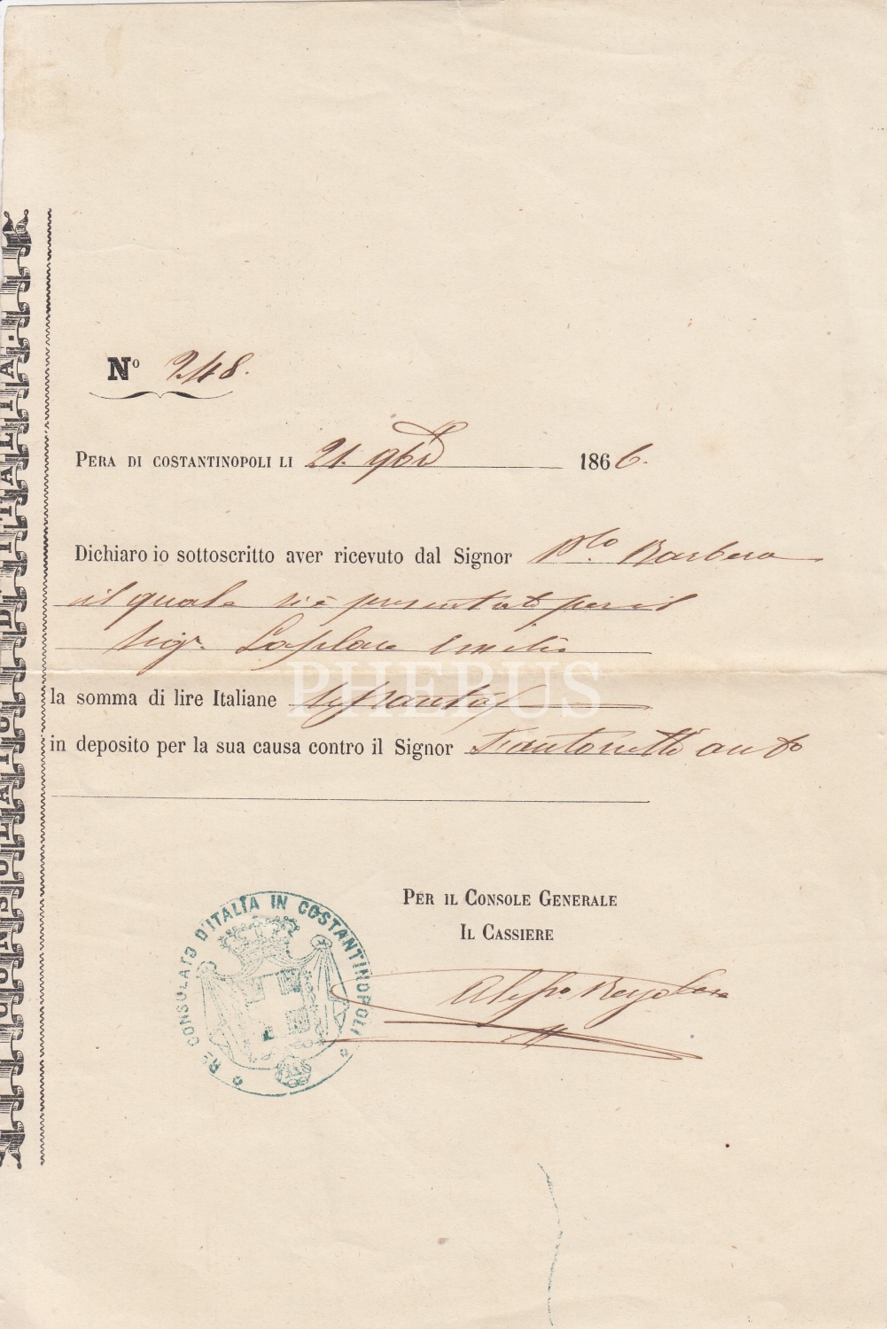 Constantinople İtalyan Konsolosluğu Erken Dönem Belge 1866