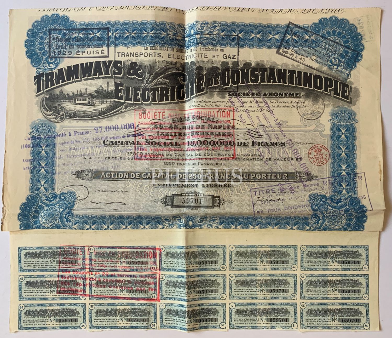 Constantinople Elektrik ve Tramvay Şirketi 250 Franklık Hisse Senedi