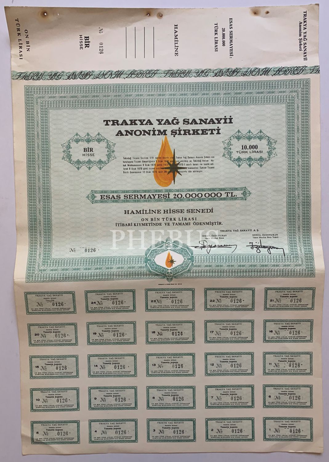 Trakya Yağ Sanayii Şirketi 1 Aksiyon Hisse Senedi