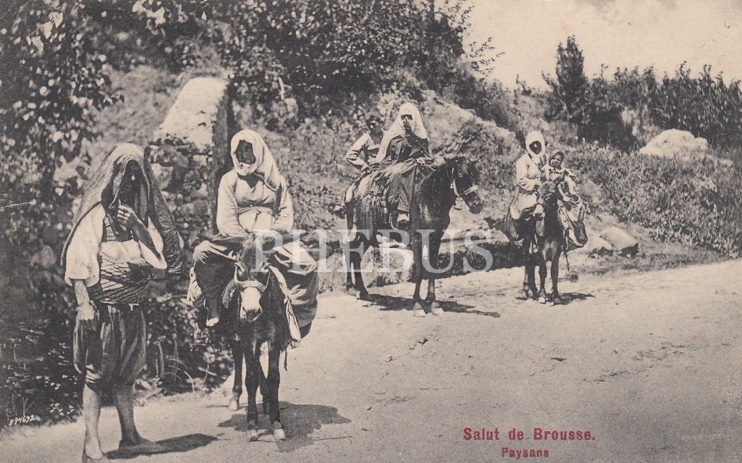 Bursa'da [Brousse] At Üstünde Köylü Kadınlar, Bursa 1 Damgasıyla Postadan Geçmiş