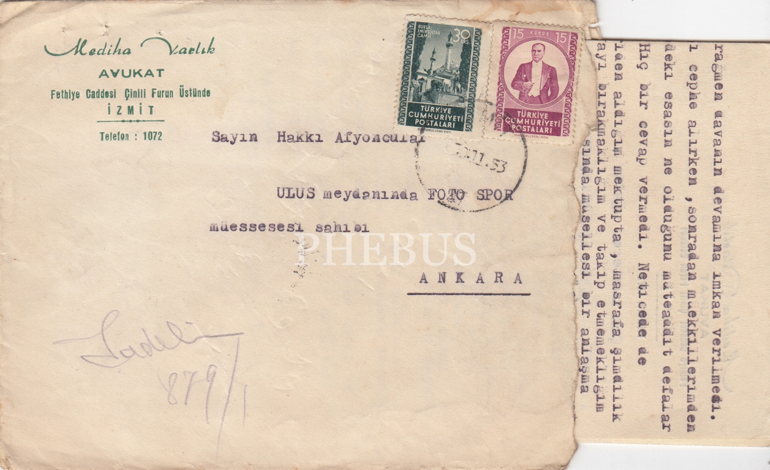 İzmit'te Avukat Mediha Varlık Antetli Zarf