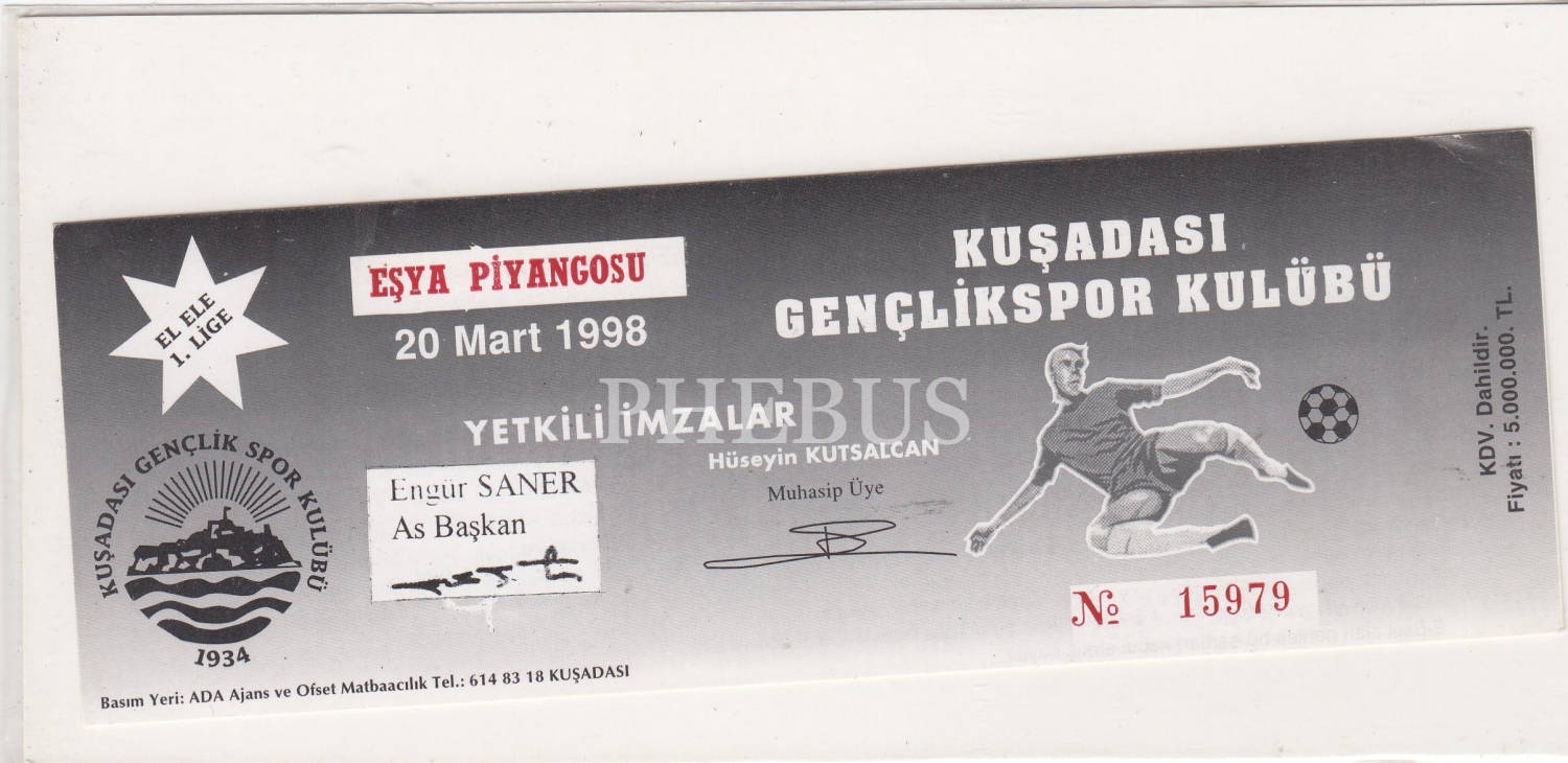 Kuşadası Gençlikspor Kulübü Eşya Piyangosu 20 Mart 1998