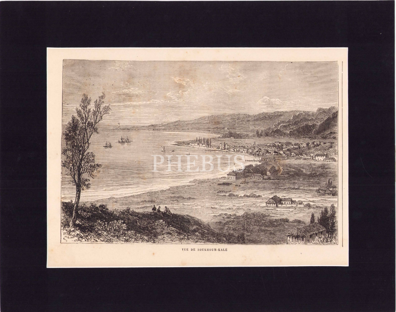 Osmanlı dönemi gravür, Sohumkale umumi manzara, dergiden kesilmiş, 23x17 cm
