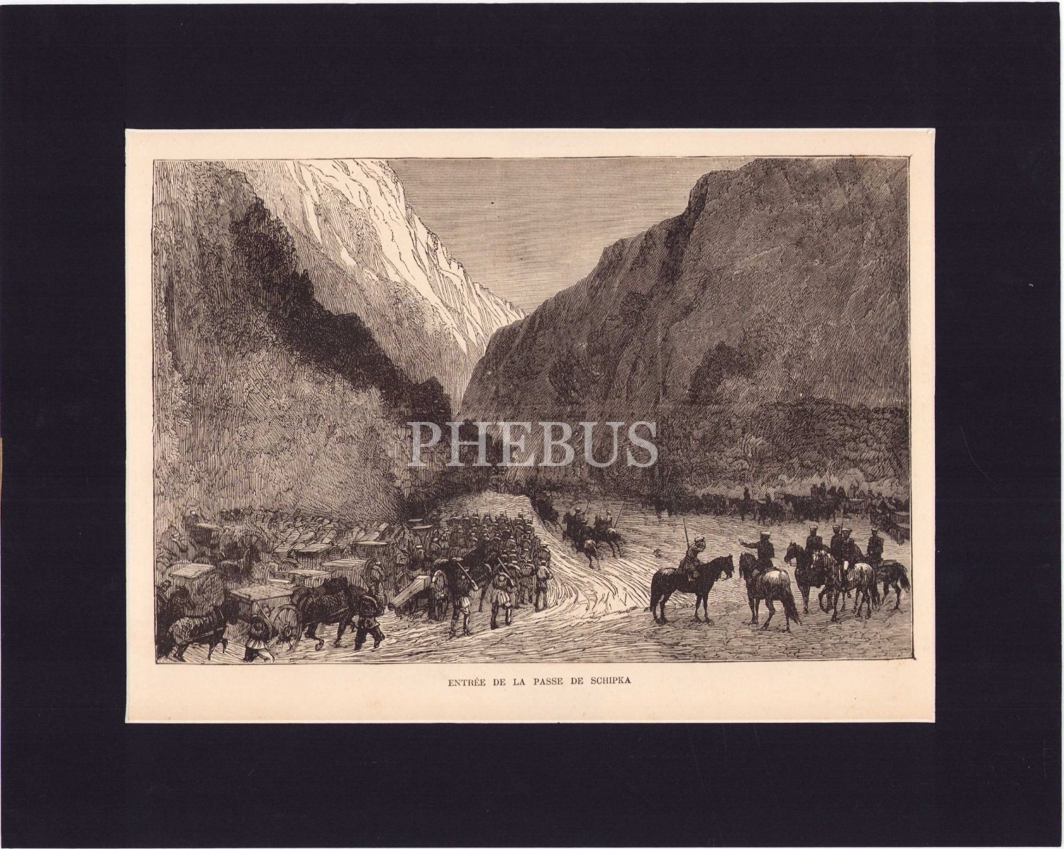 Osmanlı dönemi gravür, Türk - Rus Savaşı, 1877, Şipka geçişine giriş, dergiden kesilmiş, 23x17 cm