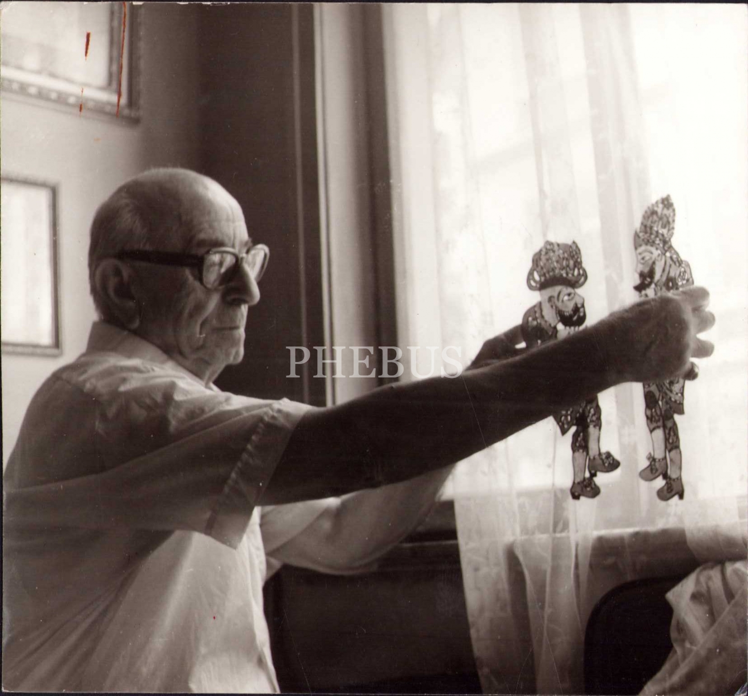Hacivat-Karagöz, arkası Nezih Uzel damgalı, 1977 tarihli, 13x12 cm
