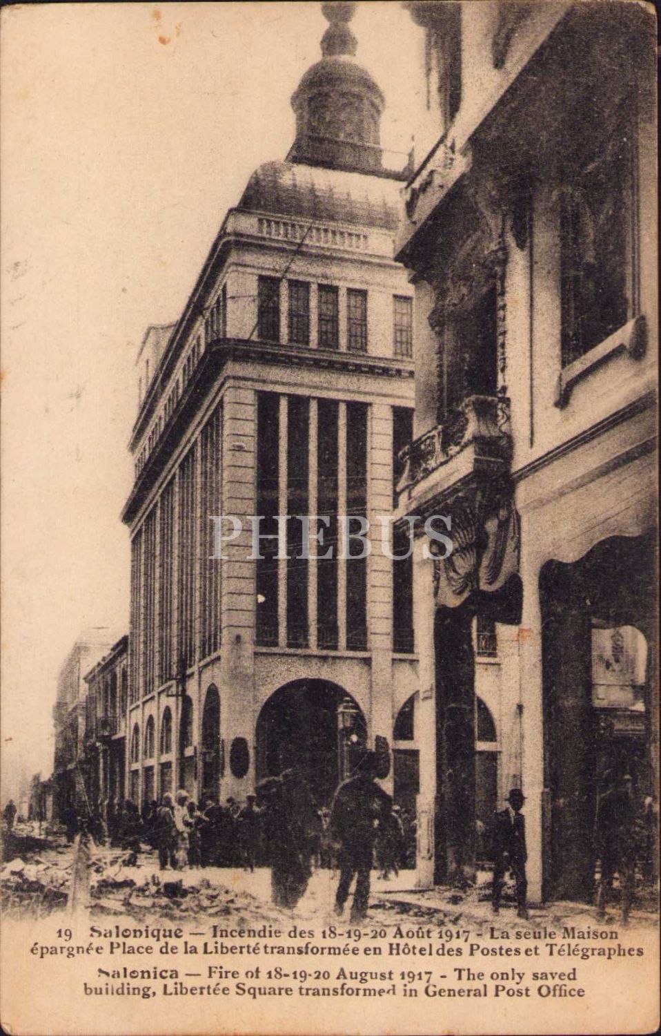 18 - 19 - 20 Ağustos 1917 Selanik yangını, Kurtarılmış tek bina, genel postaneye dönüştürülen özgürlük meydanı, editör Parisiana, Paris