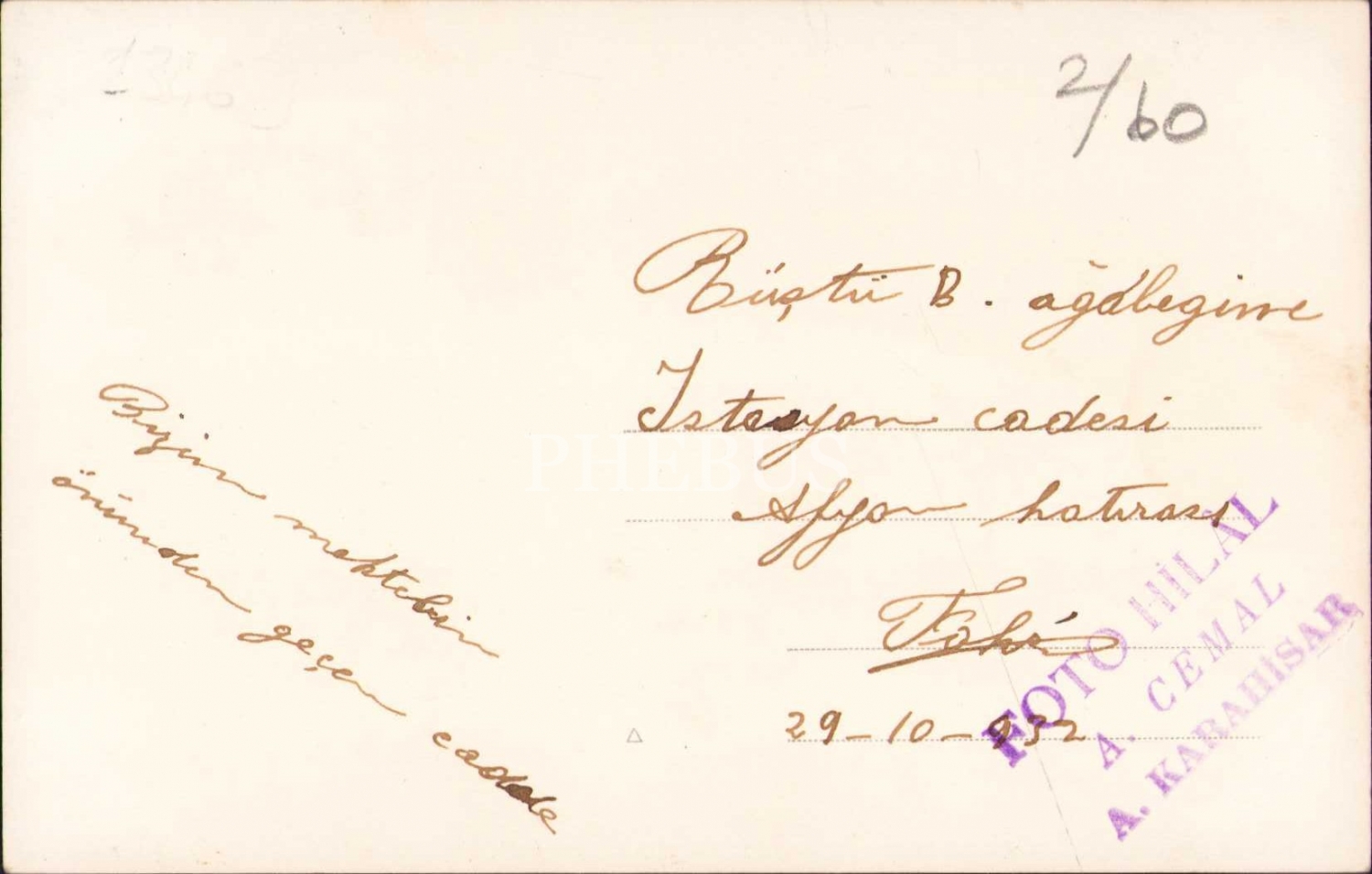 Afyon İstasyon Caddesi, arkası ithaflı, Foto Hilal A. Cemal - A. Karahisar damgalı