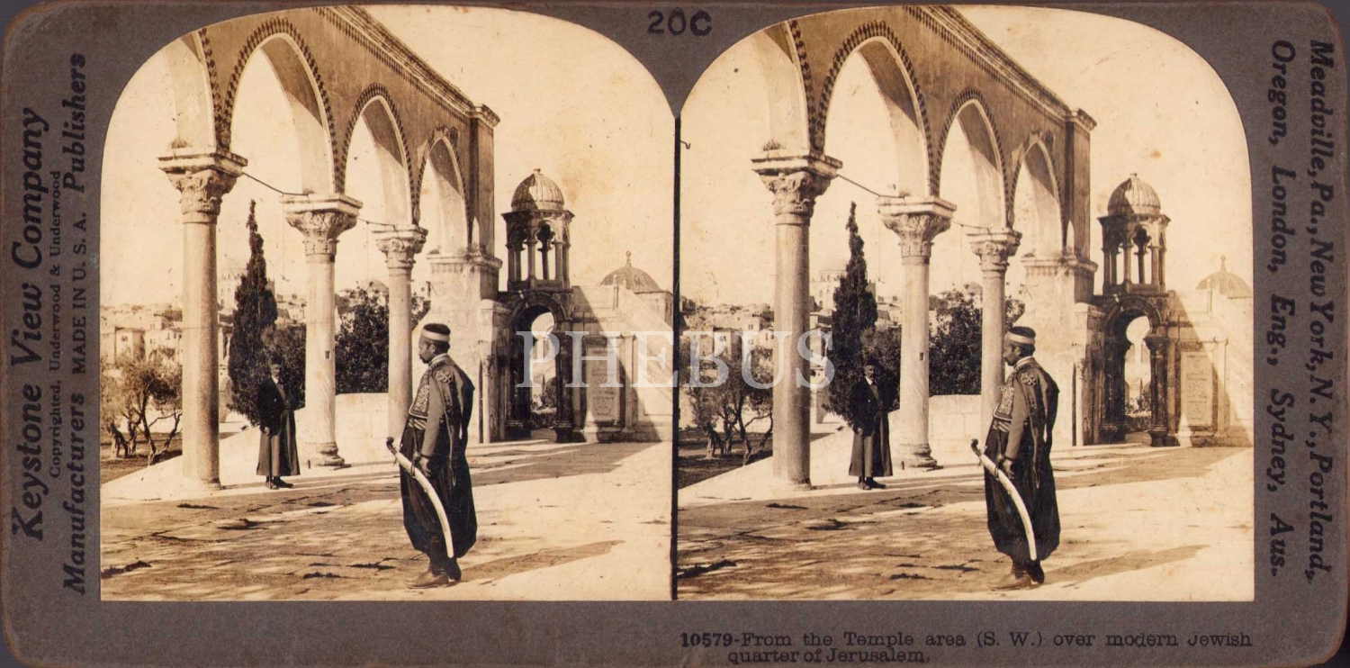 Osmanlı dönemi stereoview, Kudüs'te Yahudi mahallesi, New York baskı, 17x8 cm